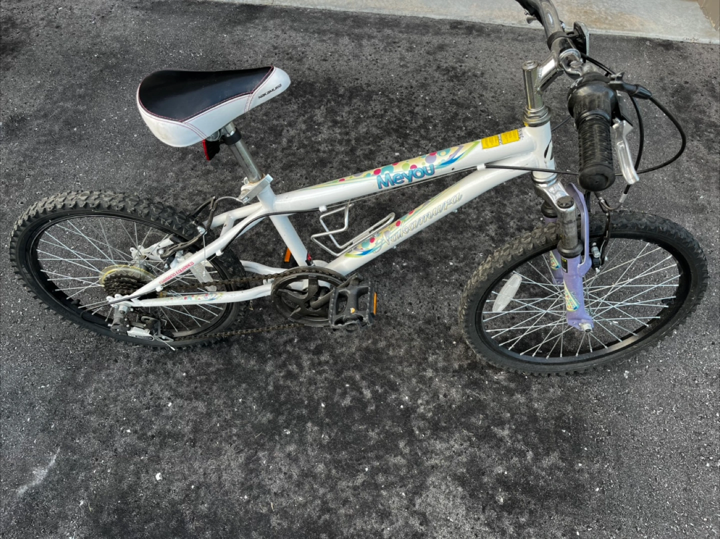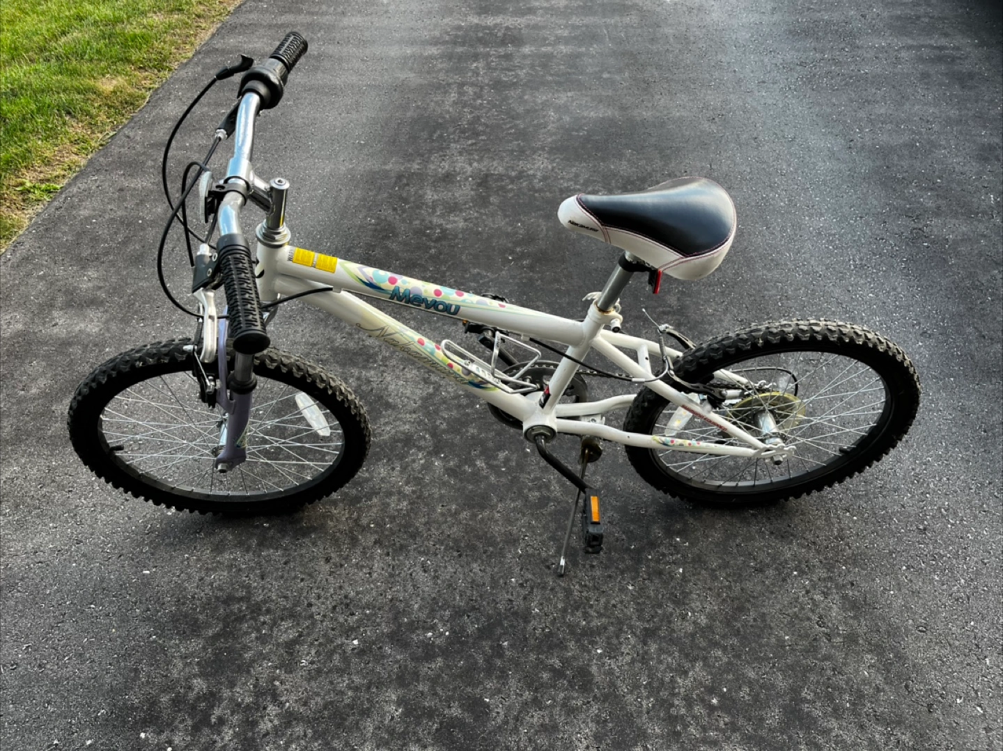 Selling a Meyou children's bike in excellent working condition. It is white with colourful accents. Perfect for a child learning to ride!
