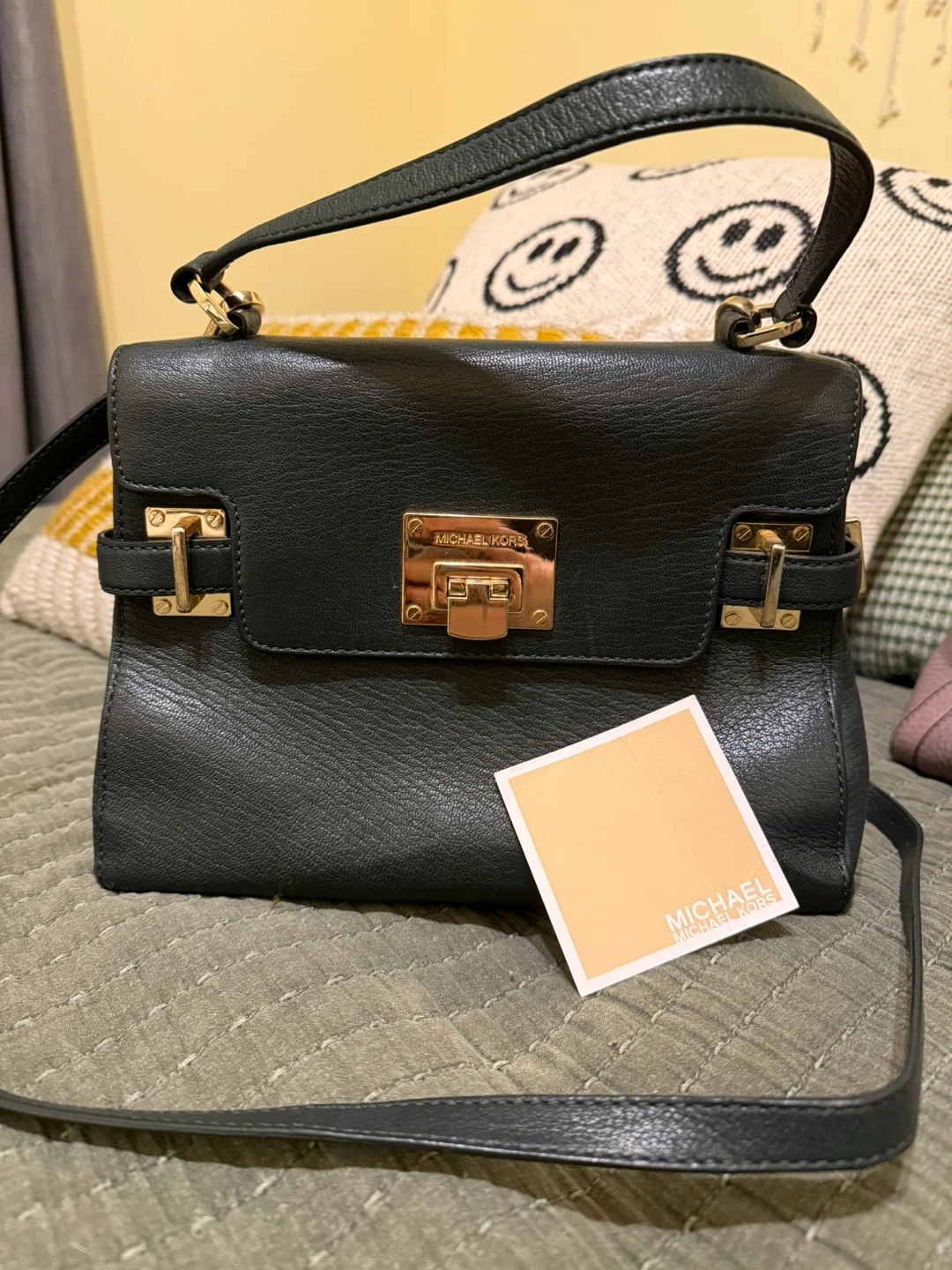 Selling a beautiful dark green leather satchel from Michael Kors! It's in great condition and has a lot of space inside with multiple compartments. Perfect for everyday use or a night out!