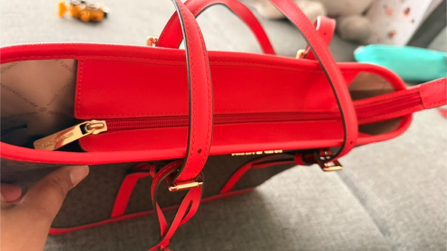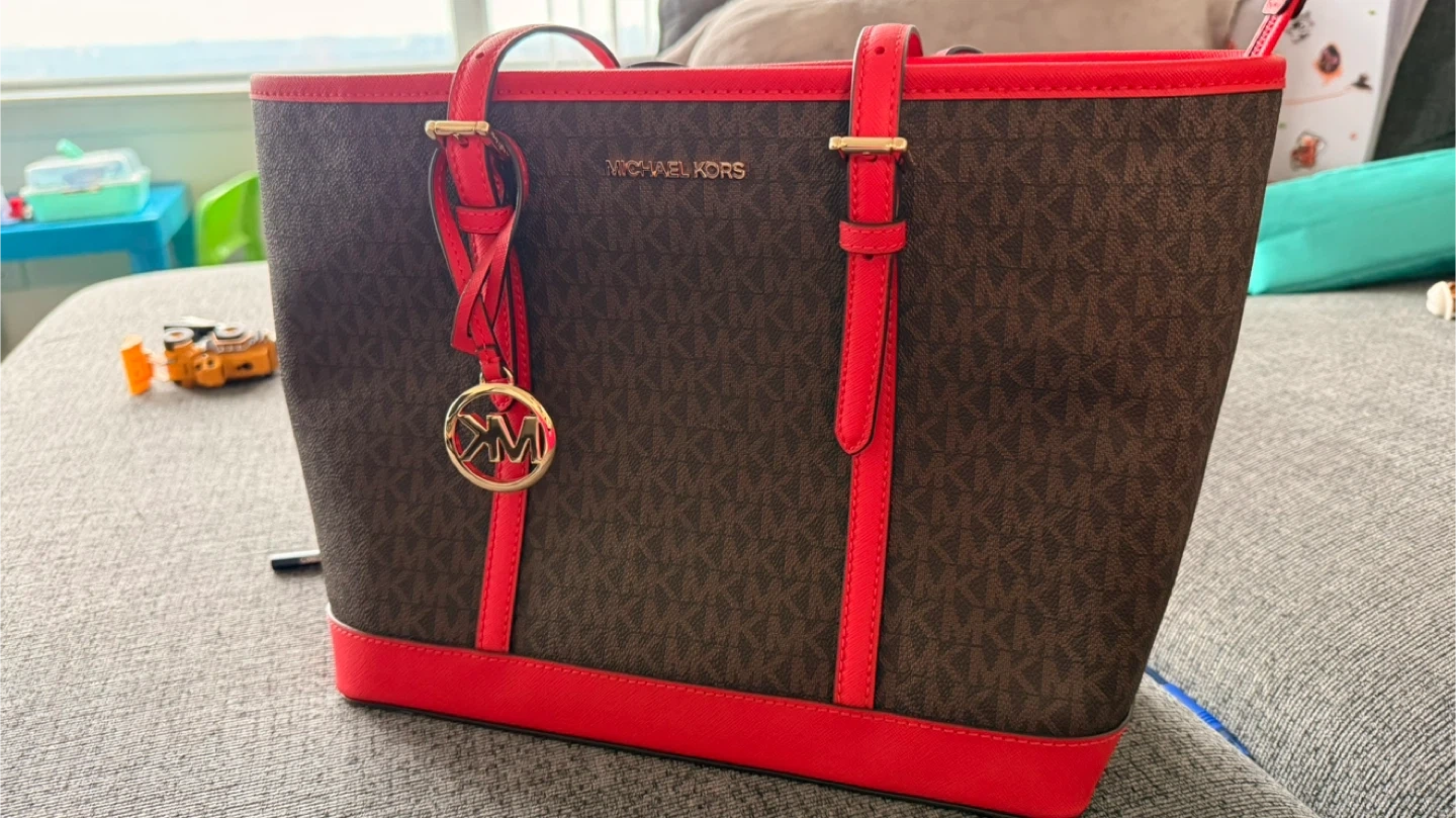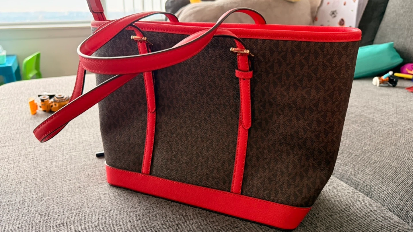 Selling a Michael Kors tote bag in a stylish brown and red colour combination. It's in great condition and ready for a new home!