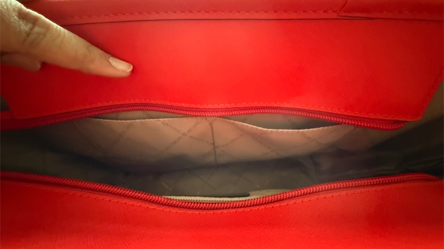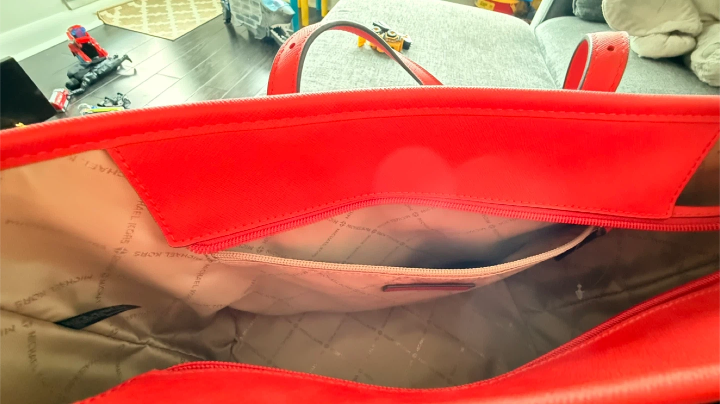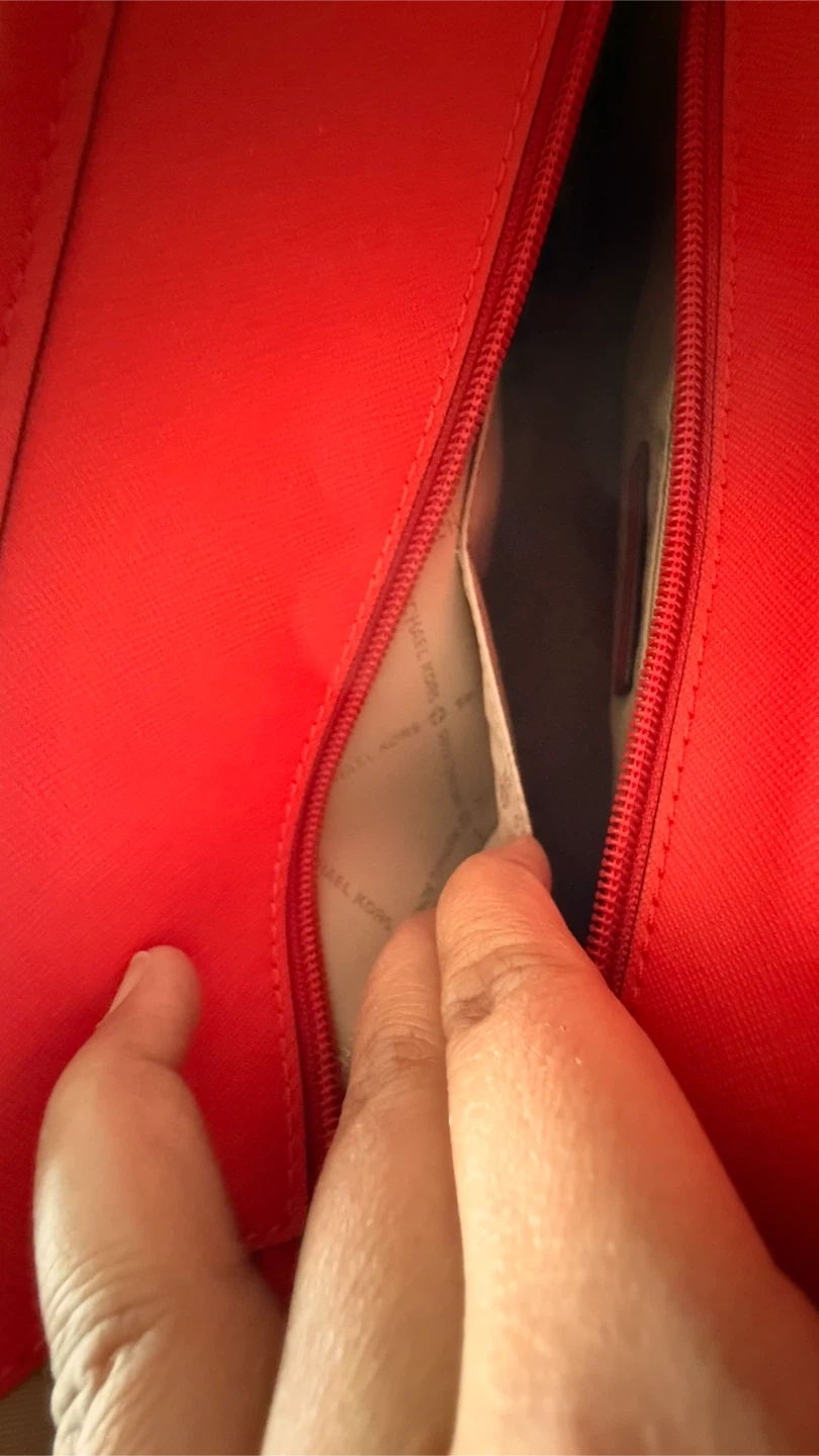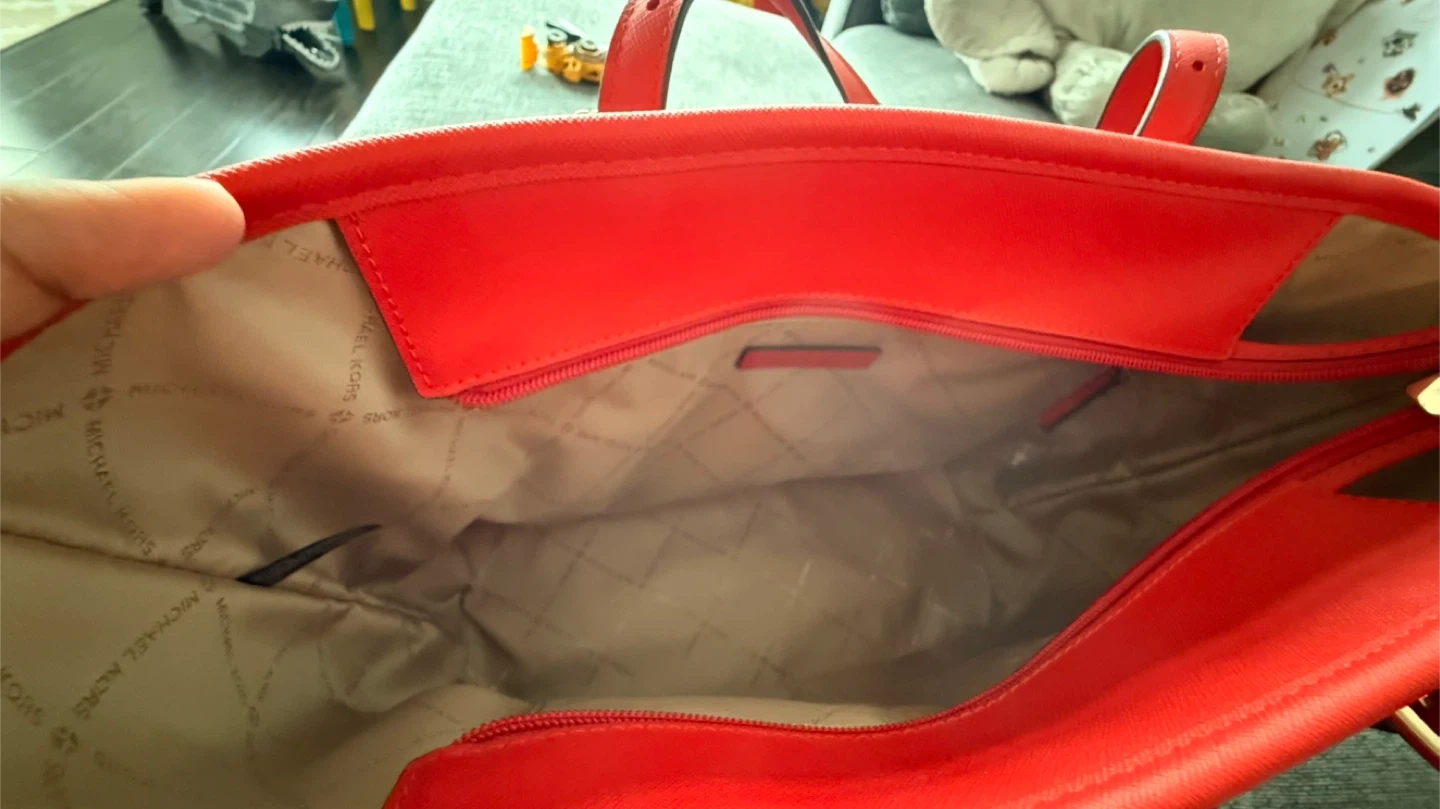 Selling a Michael Kors tote bag in a stylish brown and red colour combination. It's in great condition and ready for a new home!