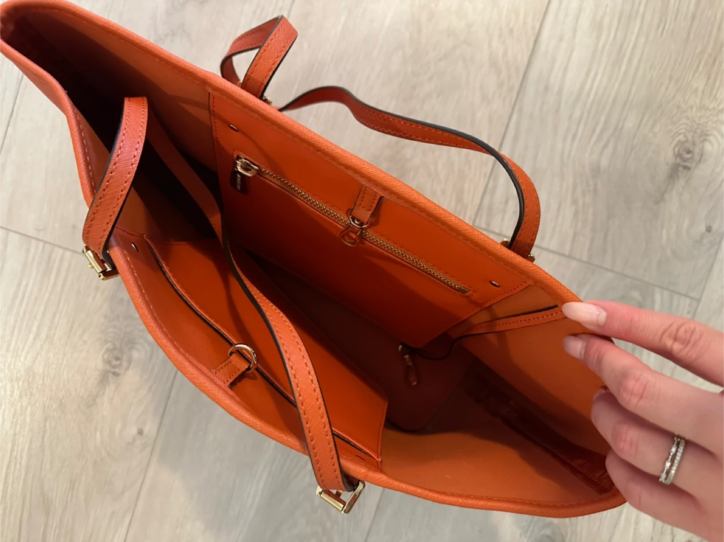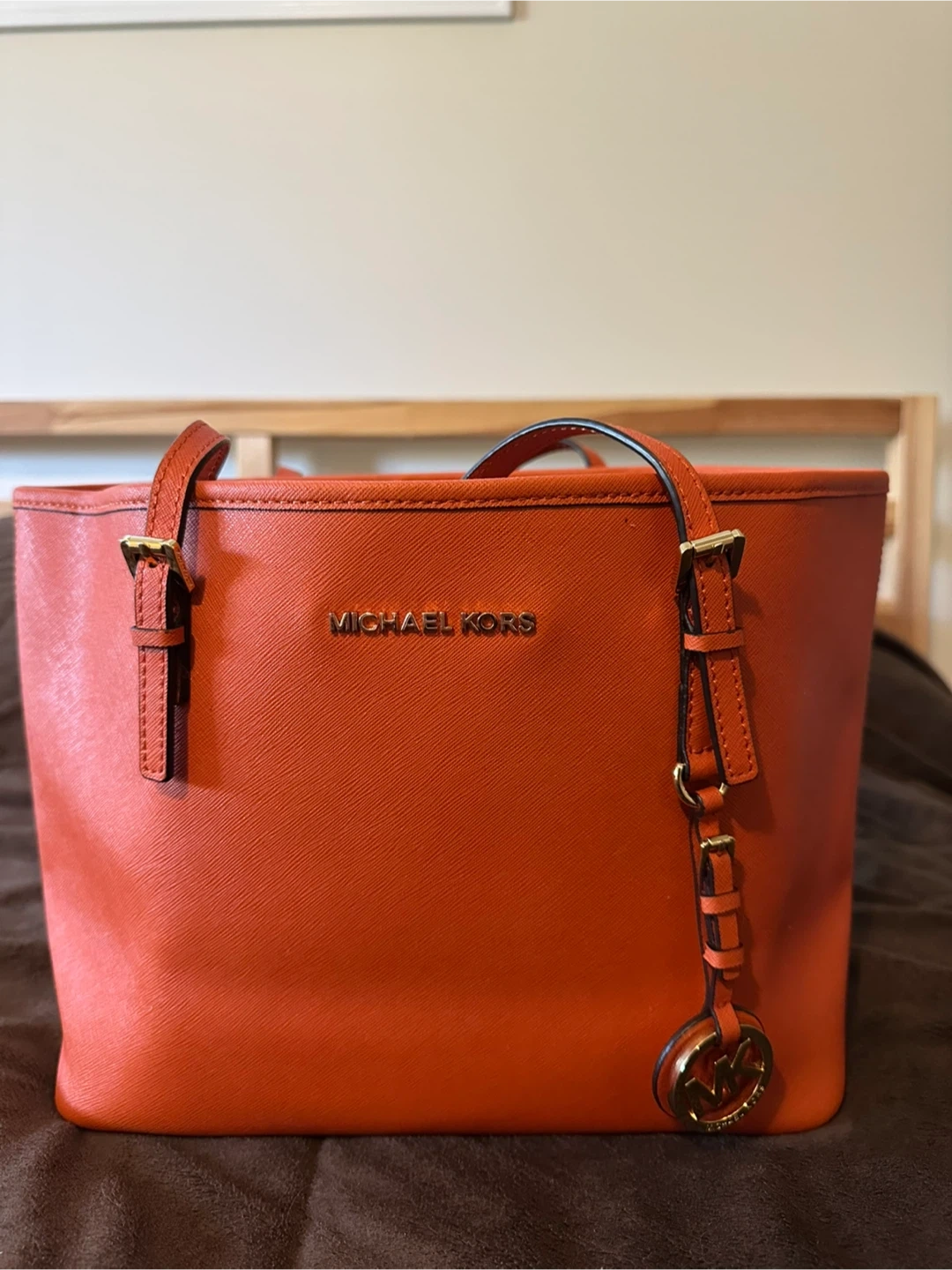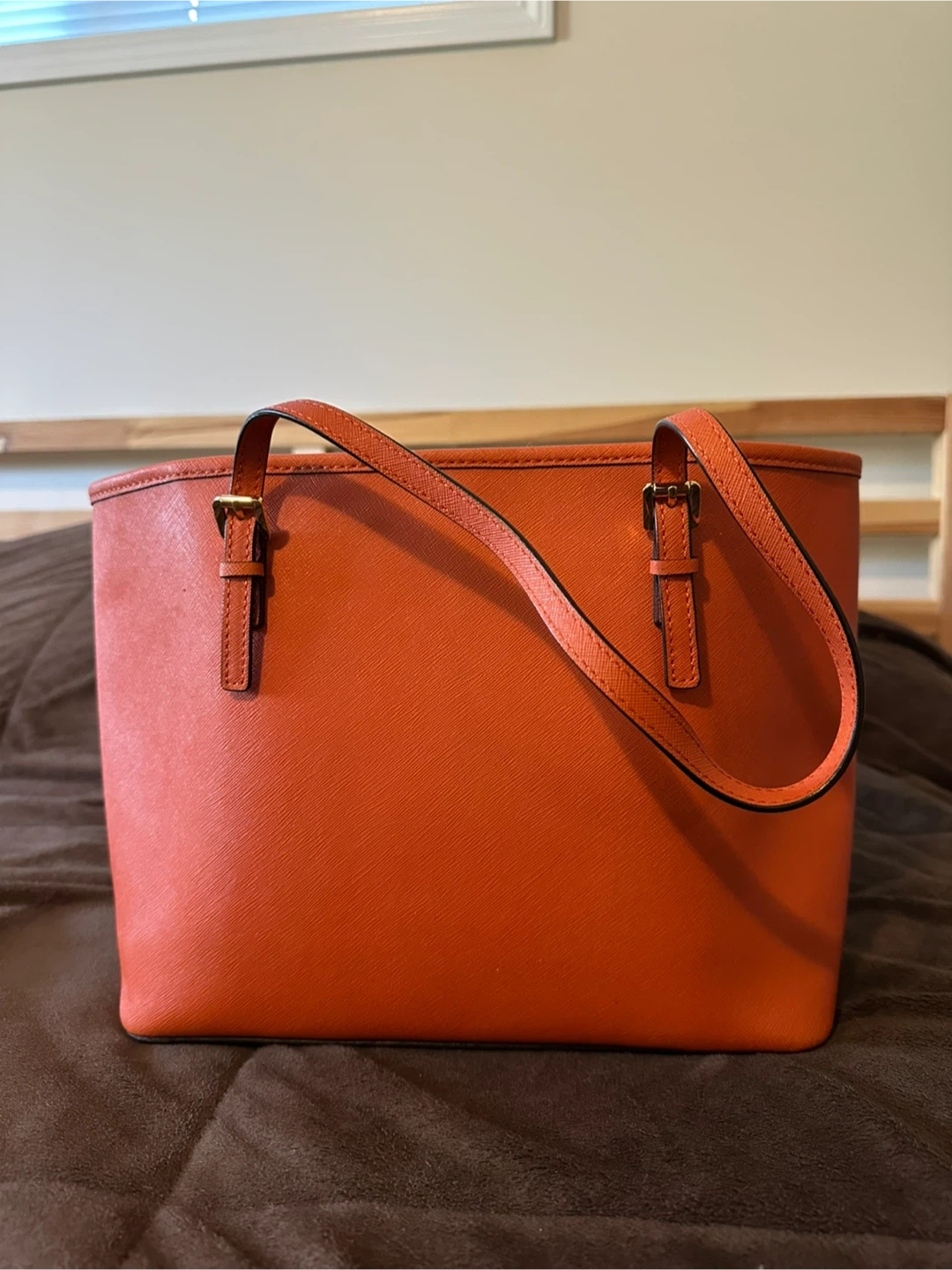 Here's a lovely Michael Kors tote bag in a vibrant orange colour! It's in great condition and ready for a new home. Perfect for carrying your everyday essentials with style and a pop of colour. Retails for over $150-$260 and has not been worn ever.