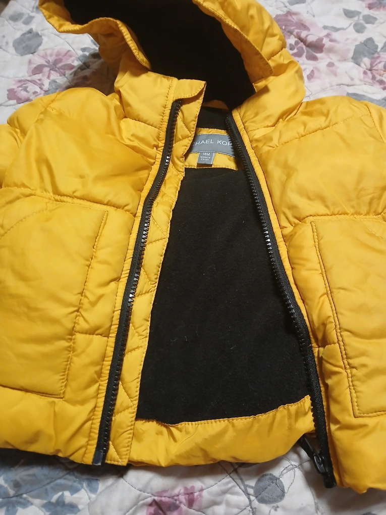 Here's a cute Michael Kors puffer jacket for your little one! It's in a vibrant yellow colour and is sized for 18 months. Perfect for keeping them warm and stylish during cooler weather. price is firm plz. pick up midland and Danforth or 401 bay street or stc mall or Kennedy stn