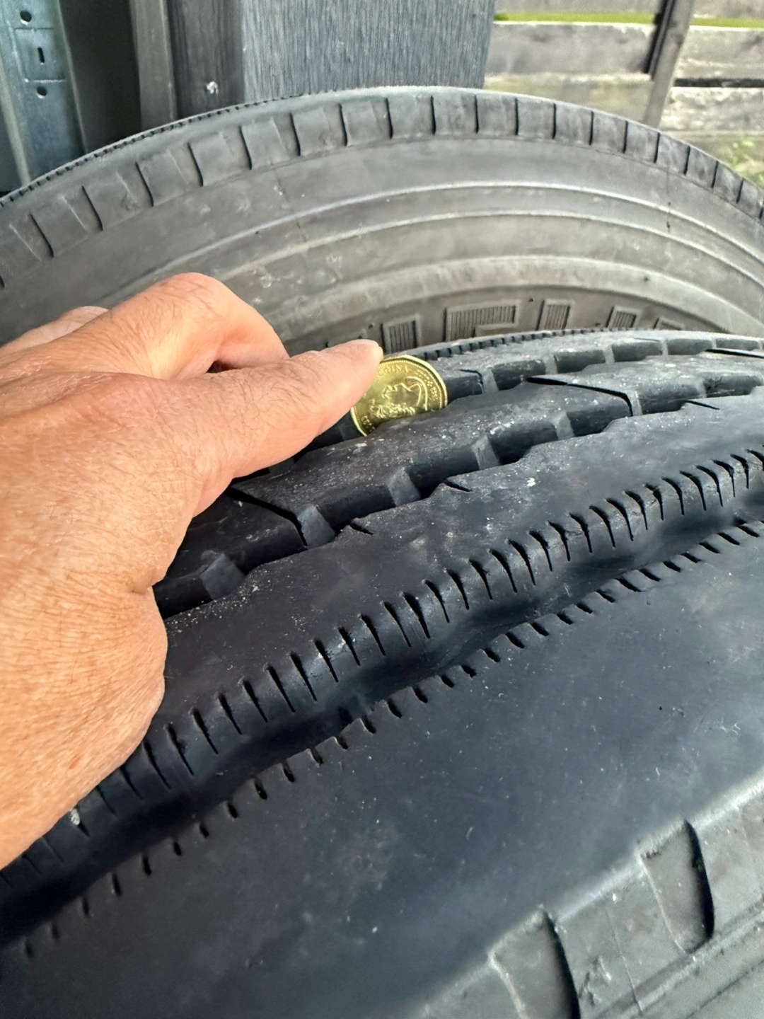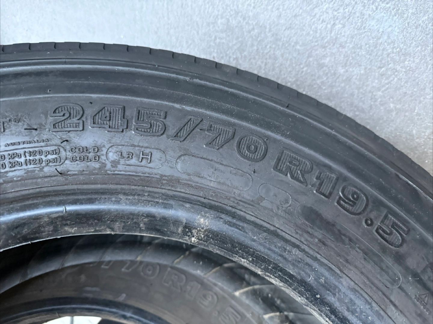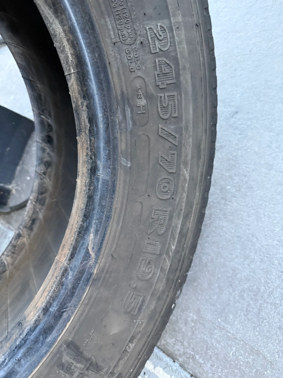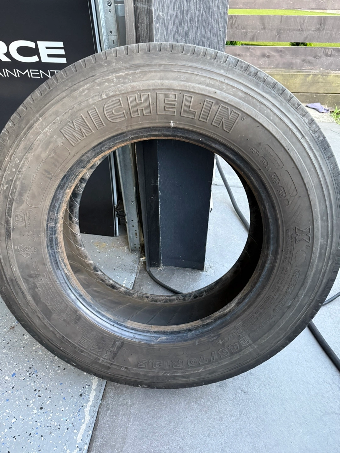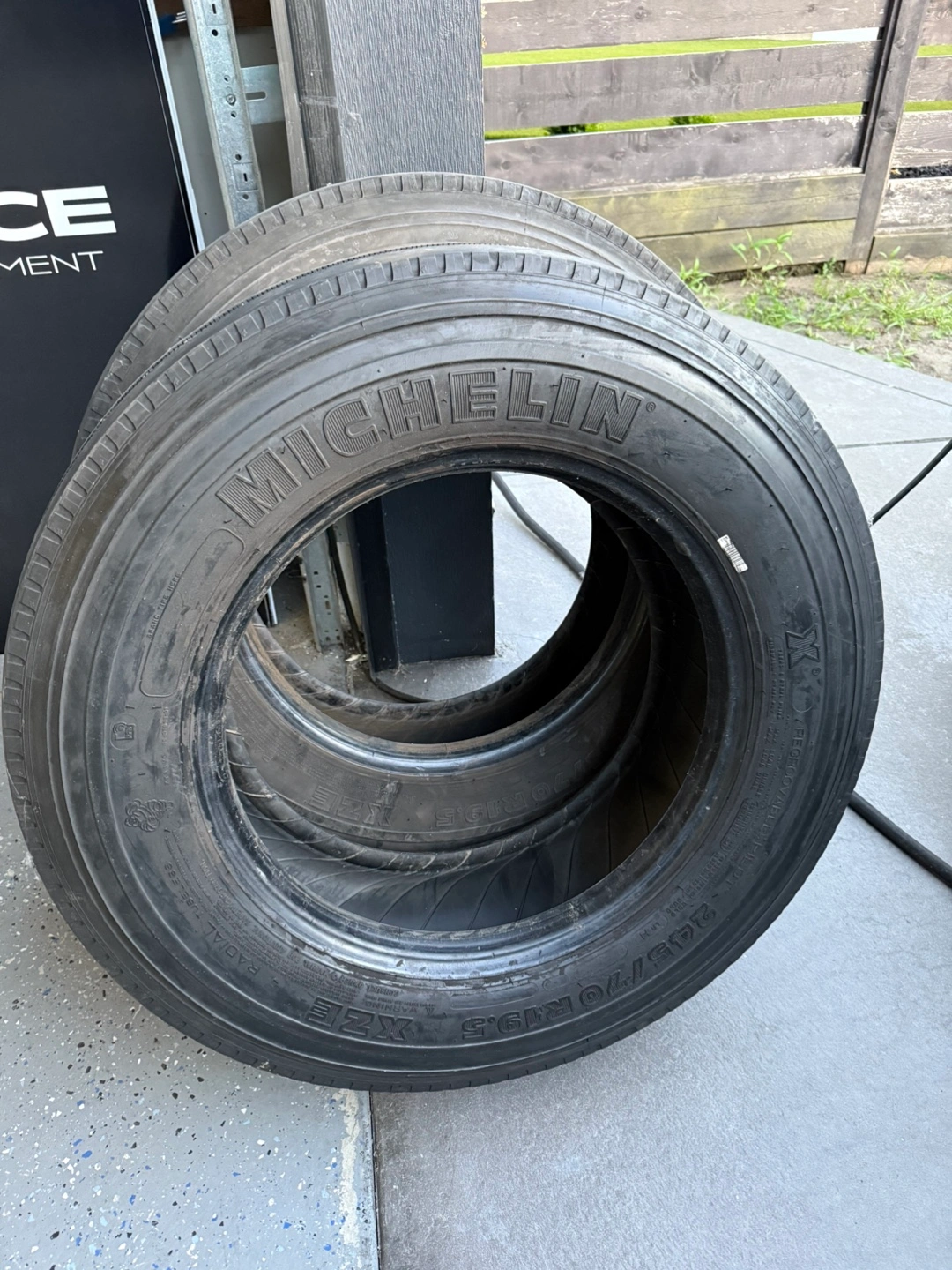 Selling a Michelin XZE tire. The size is 245/70R19.5. It's in used condition, with some wear visible. Great for anyone needing a reliable tire!