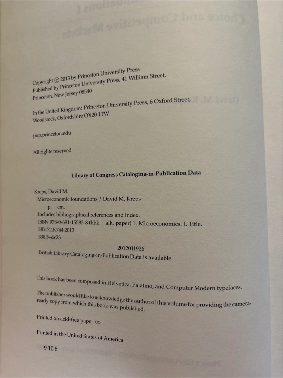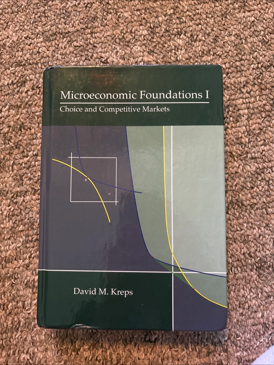 Selling a copy of Microeconomic Foundations I: Choice and Competitive Markets by David M. Kreps. It's a great resource for understanding microeconomic principles. Published by Princeton University Press in 2013 The first 2 pages have notes on them but the rest of the book is u touched