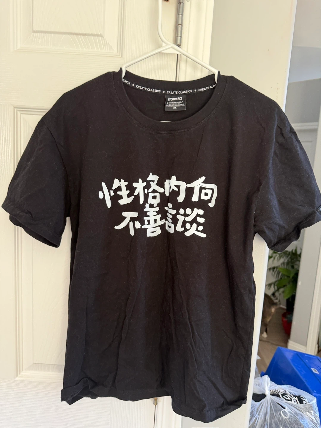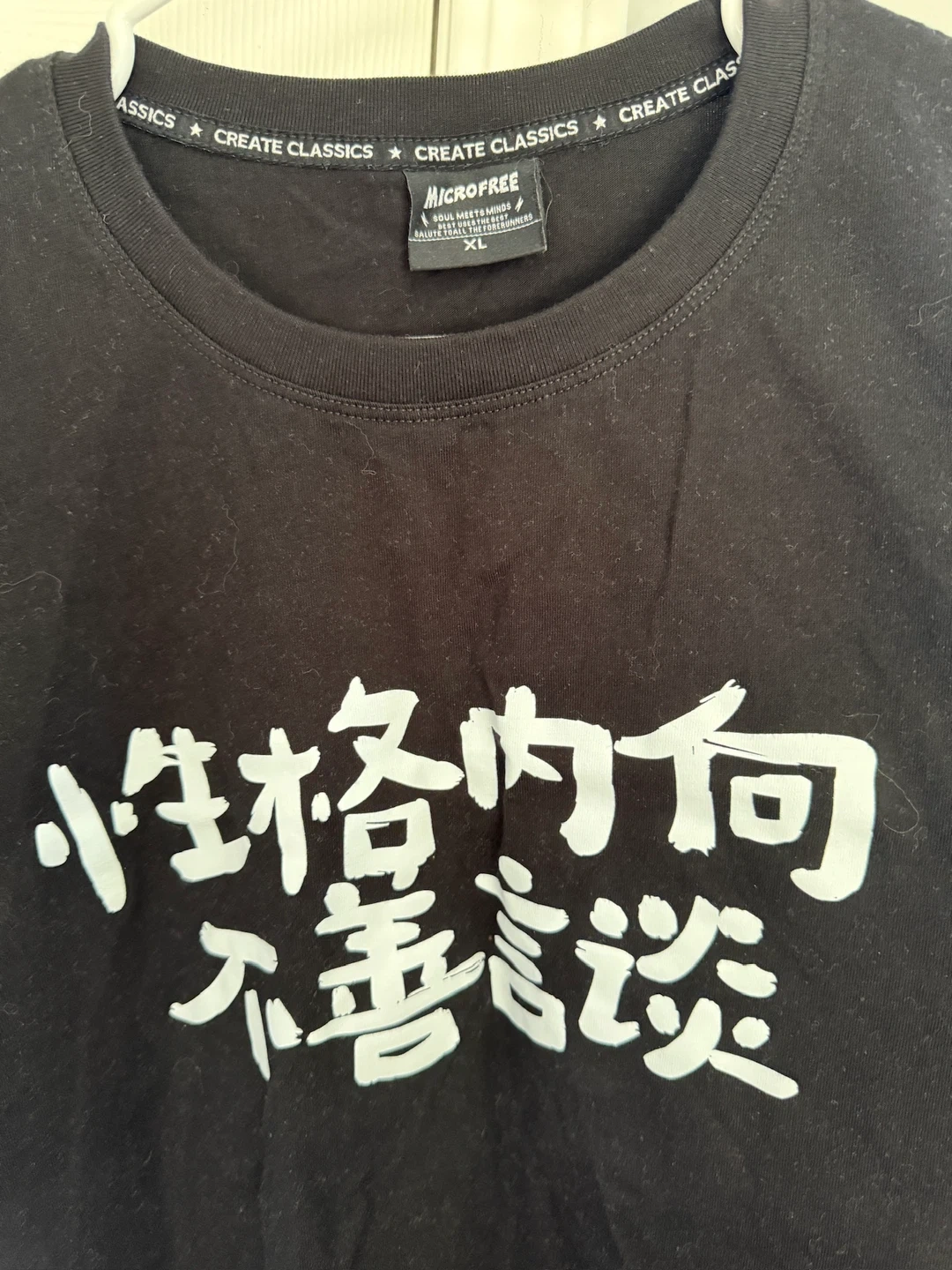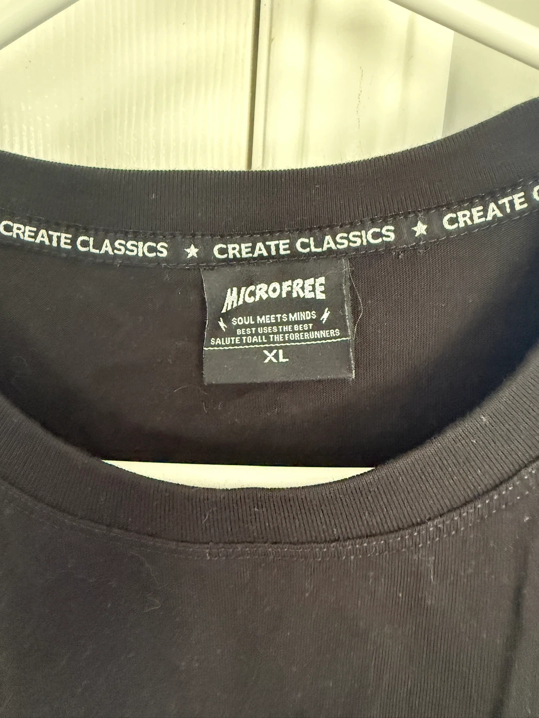 Selling a Microfree black t-shirt in size XL. It features a unique design with text on the front. Great for casual wear!