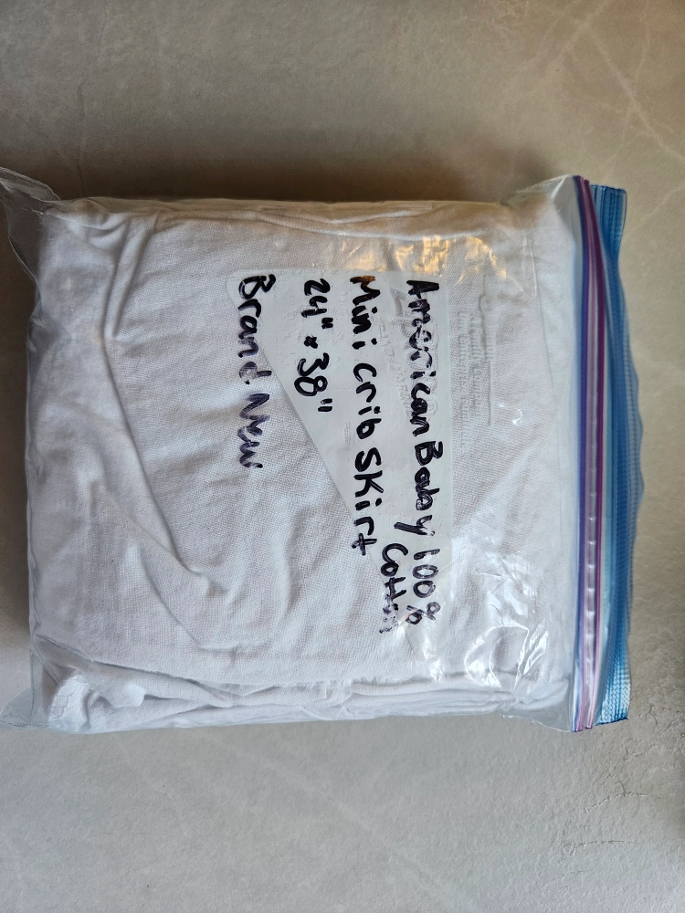 Laundered but never used In excellent condition Fits a mini-crib (I am also selling a standard sized crib skirt, check other ads) American Baby Company 100% Natural Cotton Percale Portable Mini Crib Skirt, White, Soft Breathable, for Boys and Girls https://a.co/d/daegxl1 Check out my other listings for more breastfeeding and baby/kid supplies!