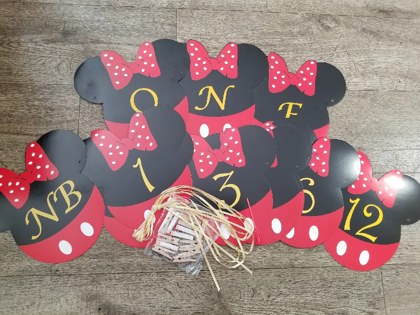 Get ready to celebrate your little one's first birthday with this adorable Minnie Mouse-themed banner! It includes the pieces for newborn to 12 months, perfect for capturing those precious milestones. Brand new