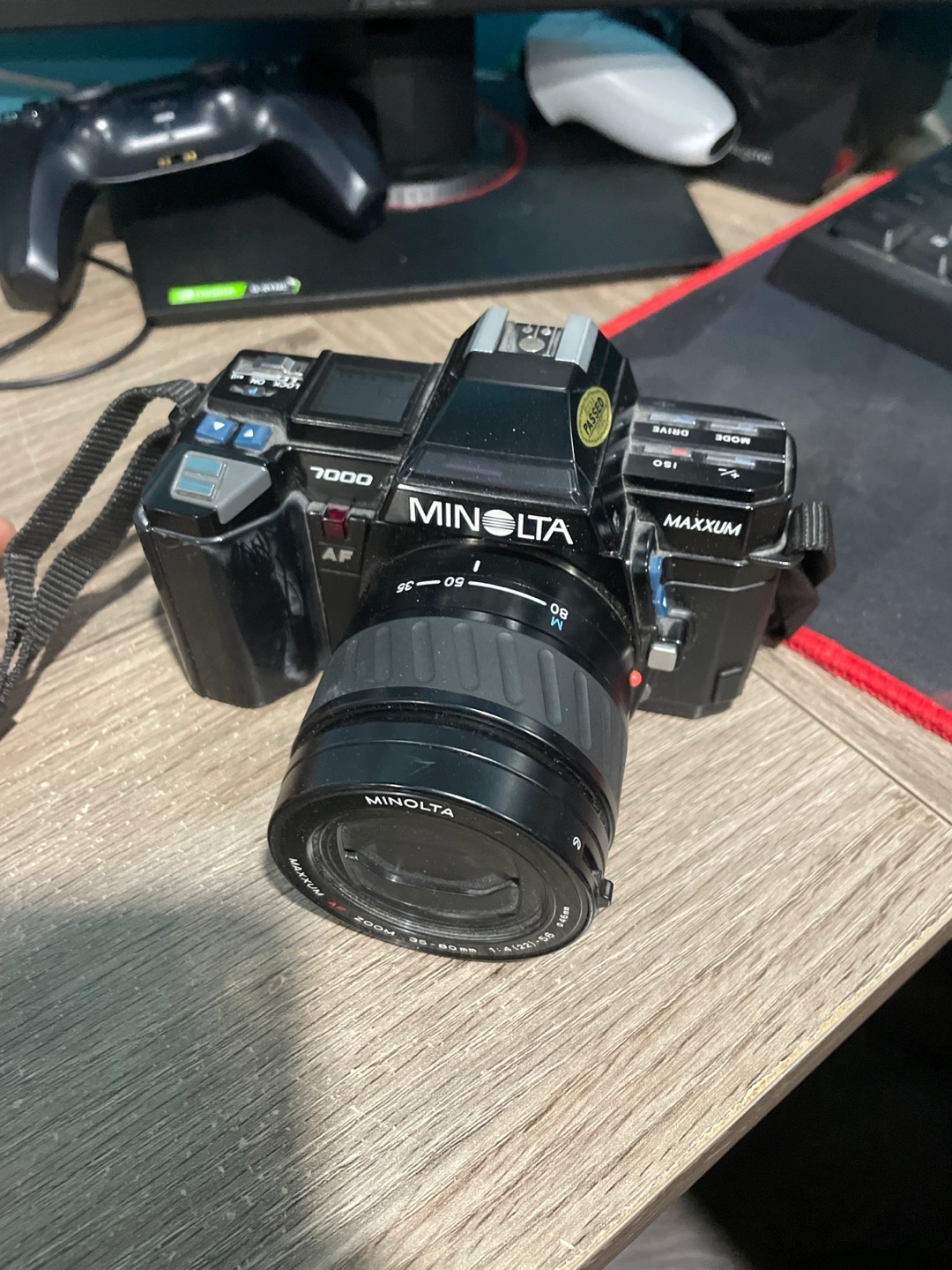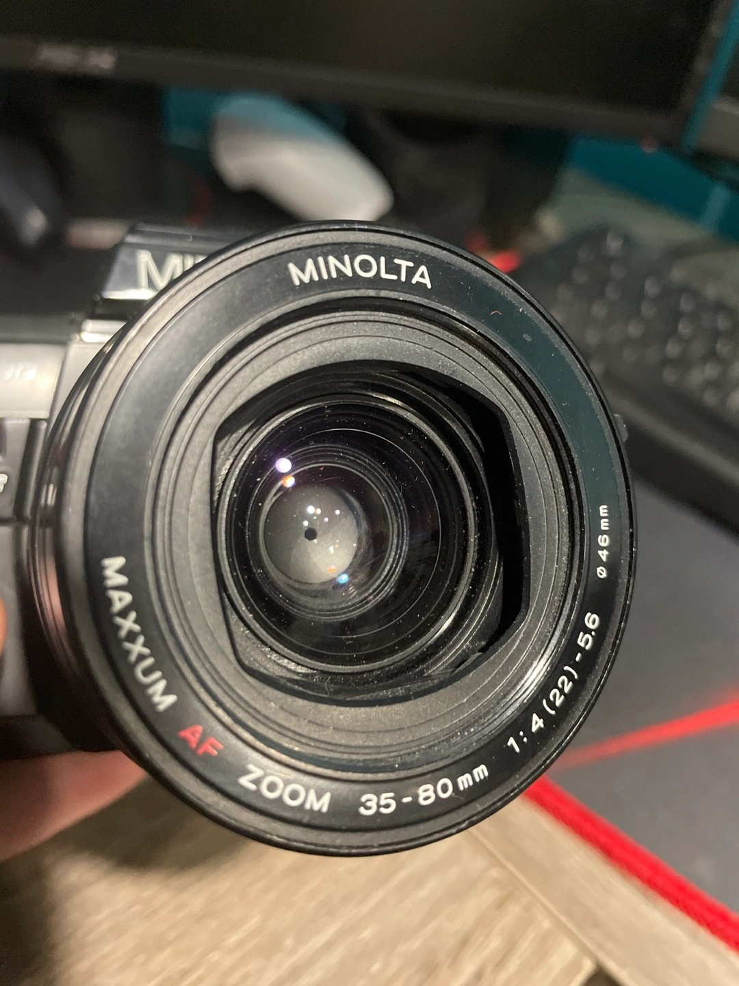 Selling a Minolta Maxxum 7000 AF film camera. It comes with a Maxxum AF Zoom 35-80mm 1:4 (22)-5.6 lens. The lens has a 46mm diameter.