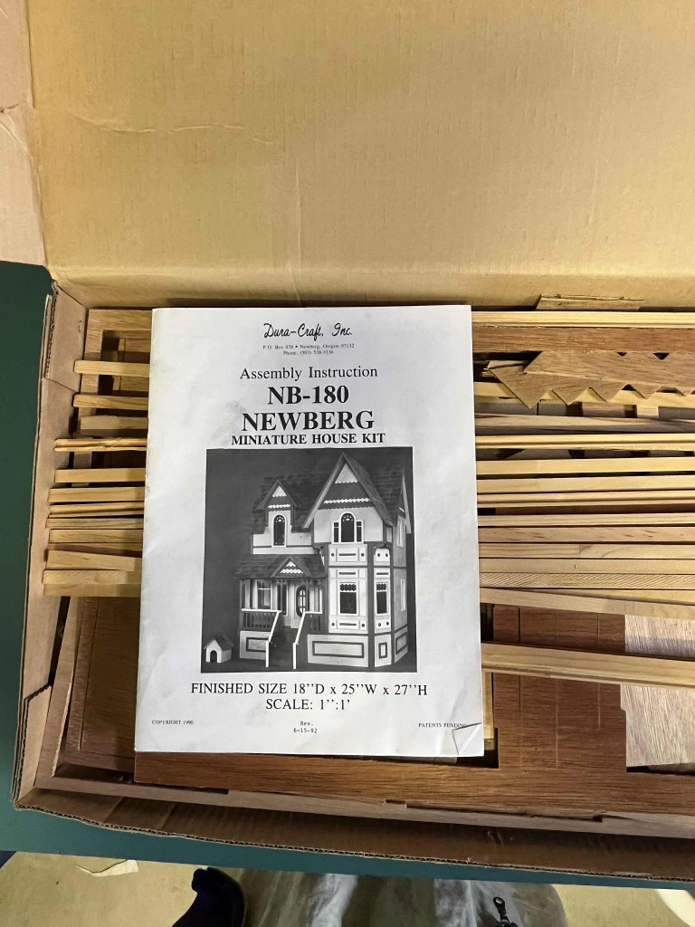 NB180 Dura-Craft Newberg Miniature Mansion. Selling for friend. -includes materials used but colour pallet can be changed easily enough -Project was started but not completed -1/8 done - All the pieces are there. -arrangements for pick up on Monday