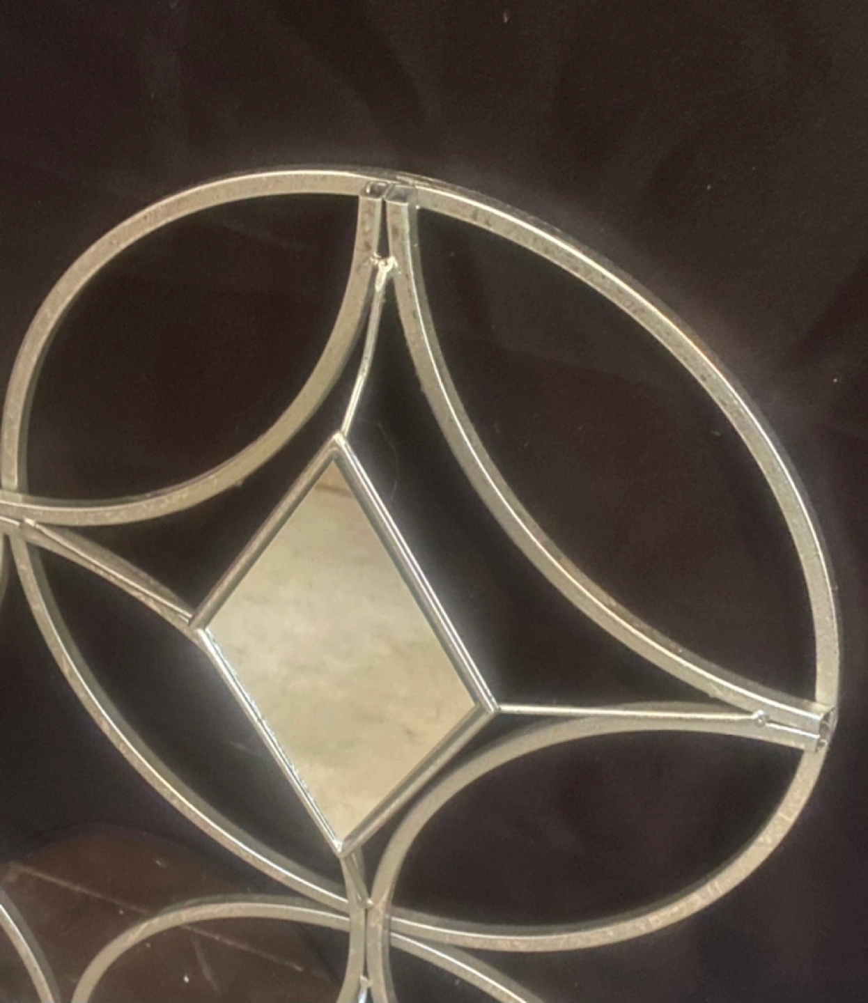 Add a touch of elegance to your space with this decorative mirror panel! The geometric design features circles and diamond shapes, creating a unique and eye-catching piece If ad is up it’s available Smoke/Pet free home