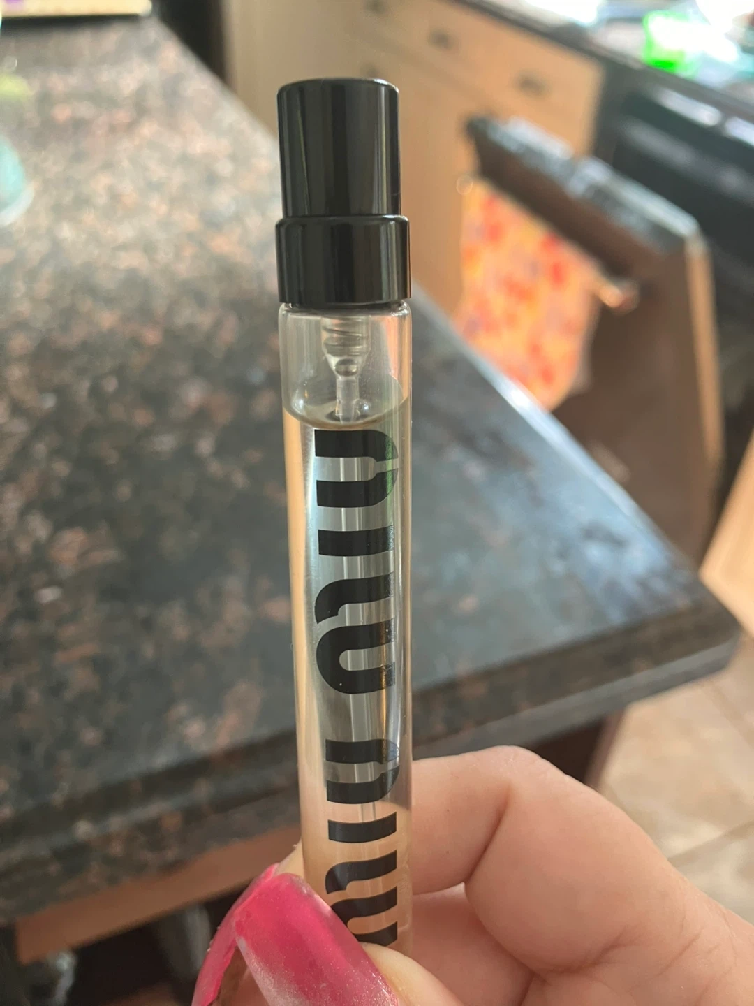 Miu Miu Miutine Eau de Parfum Travel Spray! It features a lovely strawberry and vanilla scent. Retails for $48 +tax. Cash only, p/up only-Thornhill, Yonge St & Elgin St