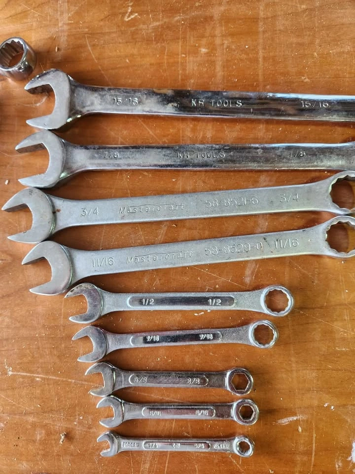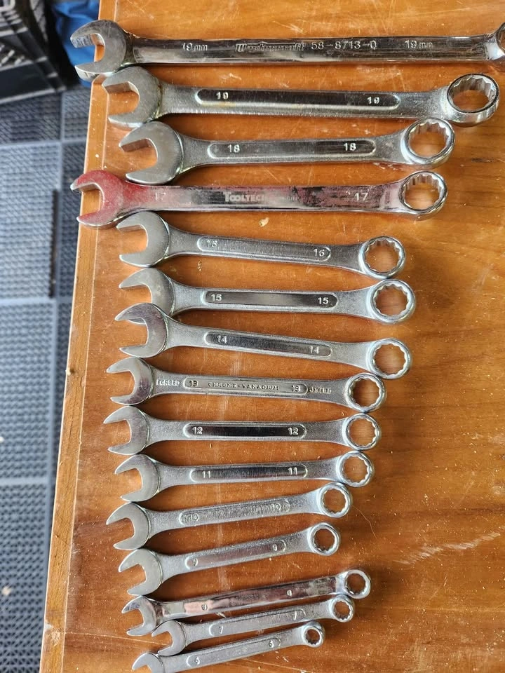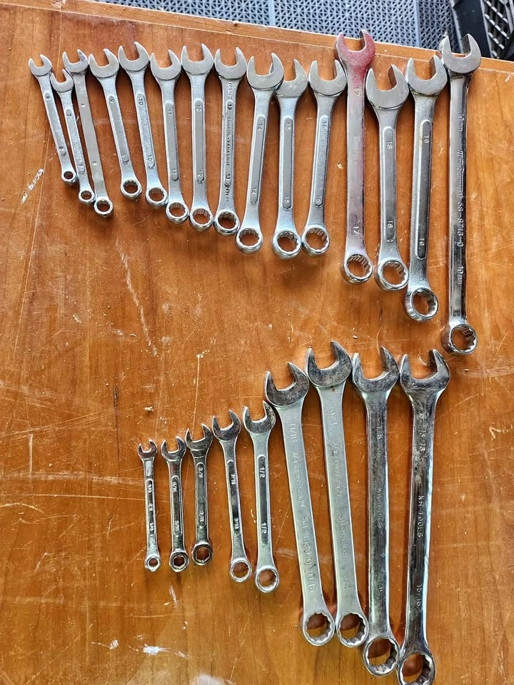 Mix set of wrenches metric ranges from 6 mil all the way to 19. Standard sizes are 1/4 5/16 3/8 7/16 half inch 11/16 3/4 7/8 and 15/16 Mix set of brands but all in good shape ready to work Best offer pickup and beansville