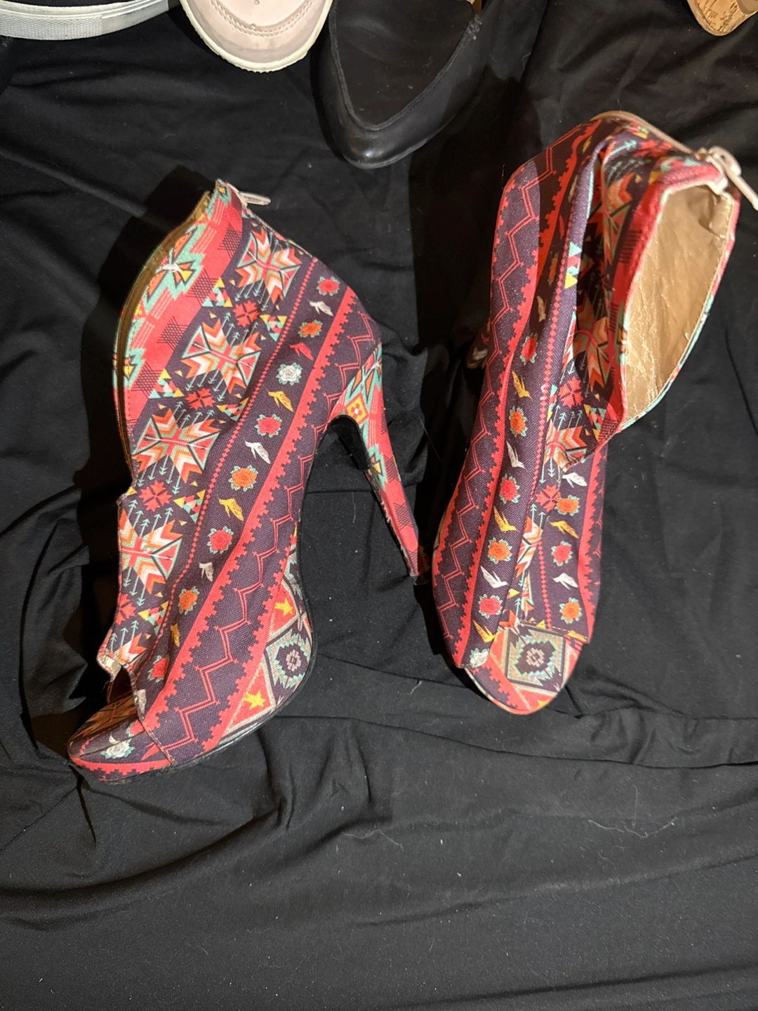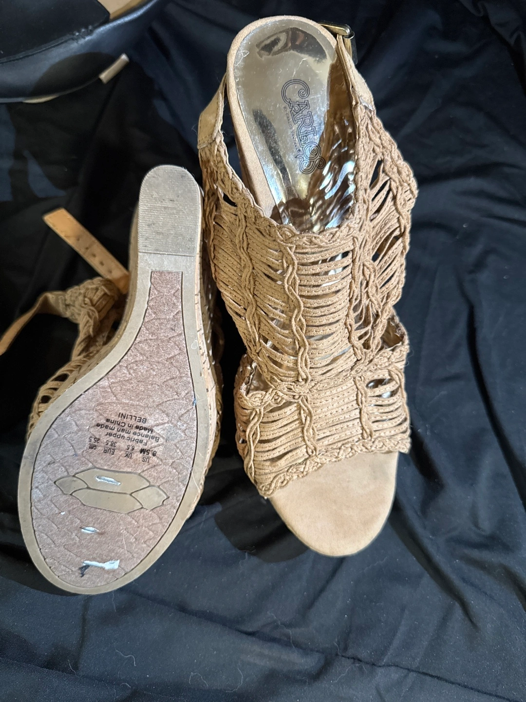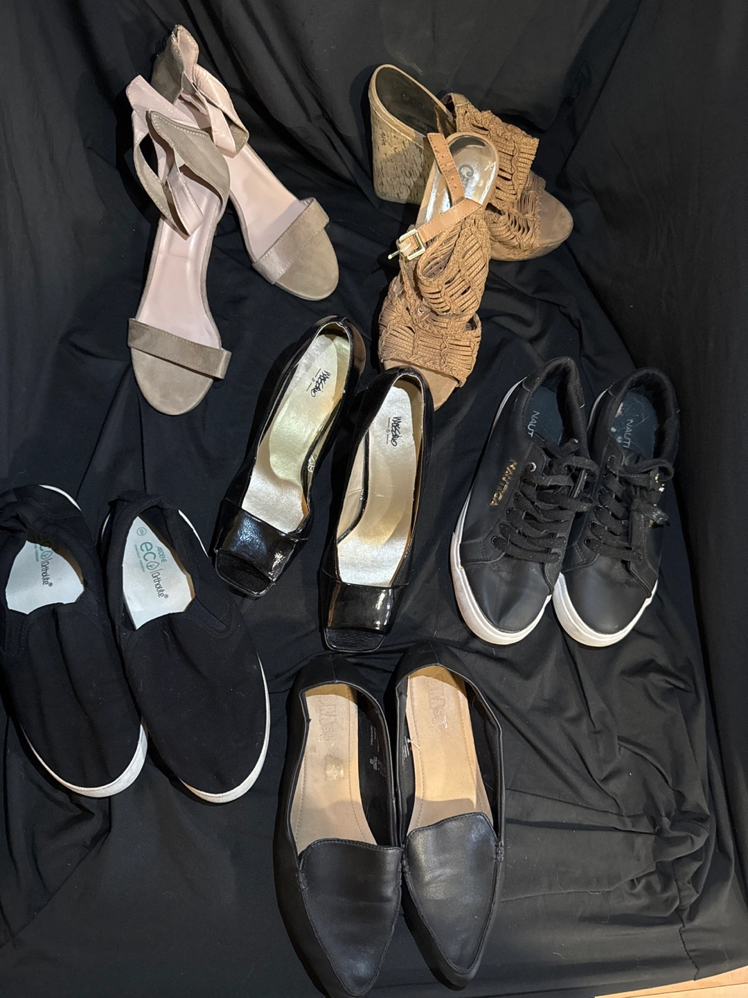 Selling a mixed lot of women's shoes in various styles and conditions. Includes brands like Mossimo, Carlos Santana, and others. Styles range from heels to flats to wedges. Great for someone looking to expand their shoe collection!