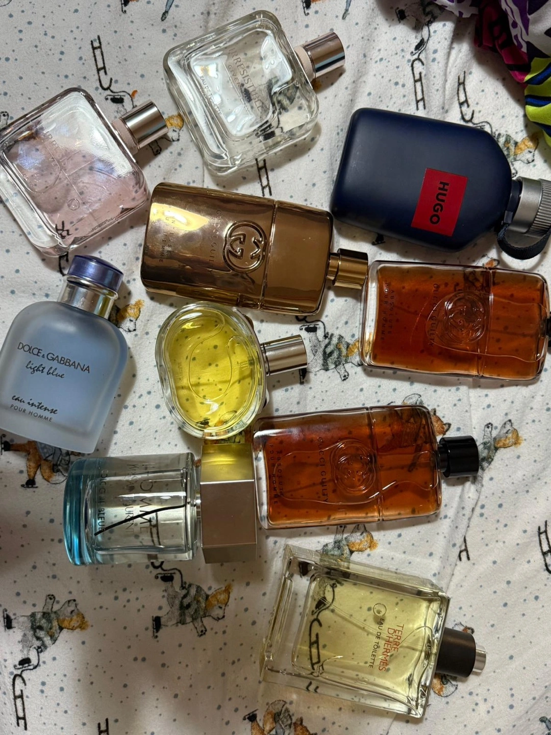 $80 each OR BEST OFFER Selling a mixed lot of perfume bottles, including: - Dolce & Gabbana Light Blue eau intense pour homme - Hugo - Gucci Guilty - Givenchy Irresistible eau de toilette - Terre d'Hermes eau de toilette
