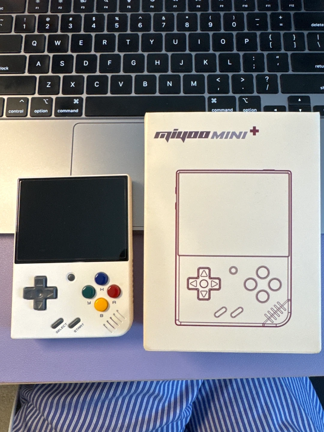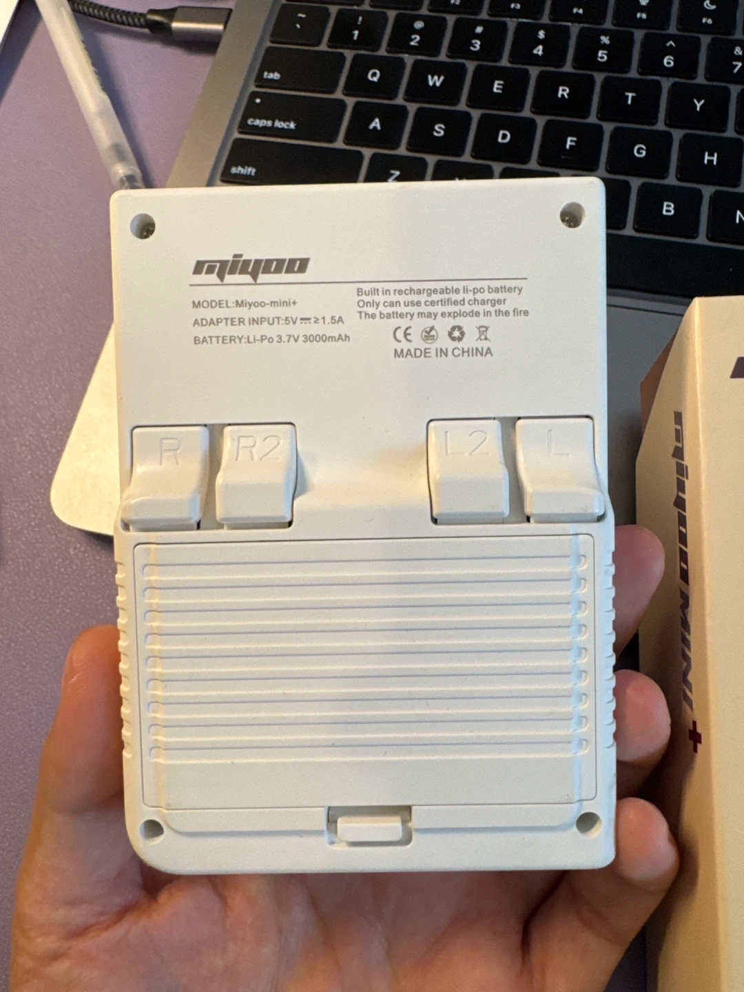 Selling a Miyoo Mini Plus retro gaming console in excellent condition! This little device packs a punch and is perfect for on-the-go gaming. Key features include: - Supports external Micro SD card - Battery life of 7-8 hours - 3.5" IPS screen - Full screen/original resolution display - Screen brightness adjustment - 3000mAh rechargeable Lithium battery Comes with the original box!