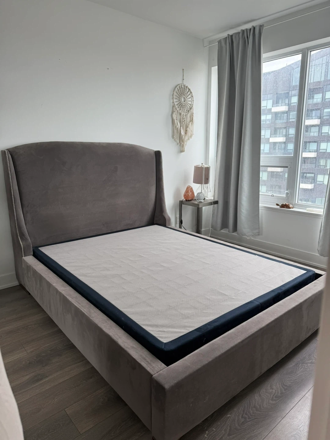 High quality. From Mobilia. Paid over $2500 Selling a queen size bed frame. Perfect for adding a touch of elegance to your bedroom! Pick up only Cash or e-transfer Serious inquiries only please