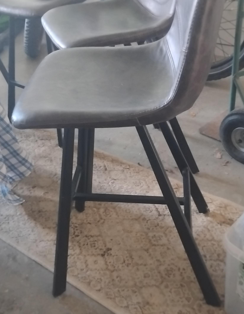 Selling a modern-style bar stool with a mocha shade leather seat and black metal legs. It's in good condition and would be a great addition to any kitchen or bar area! X4 all together as a set or individual (your choice) name your price for each or buy as a whole set ๐