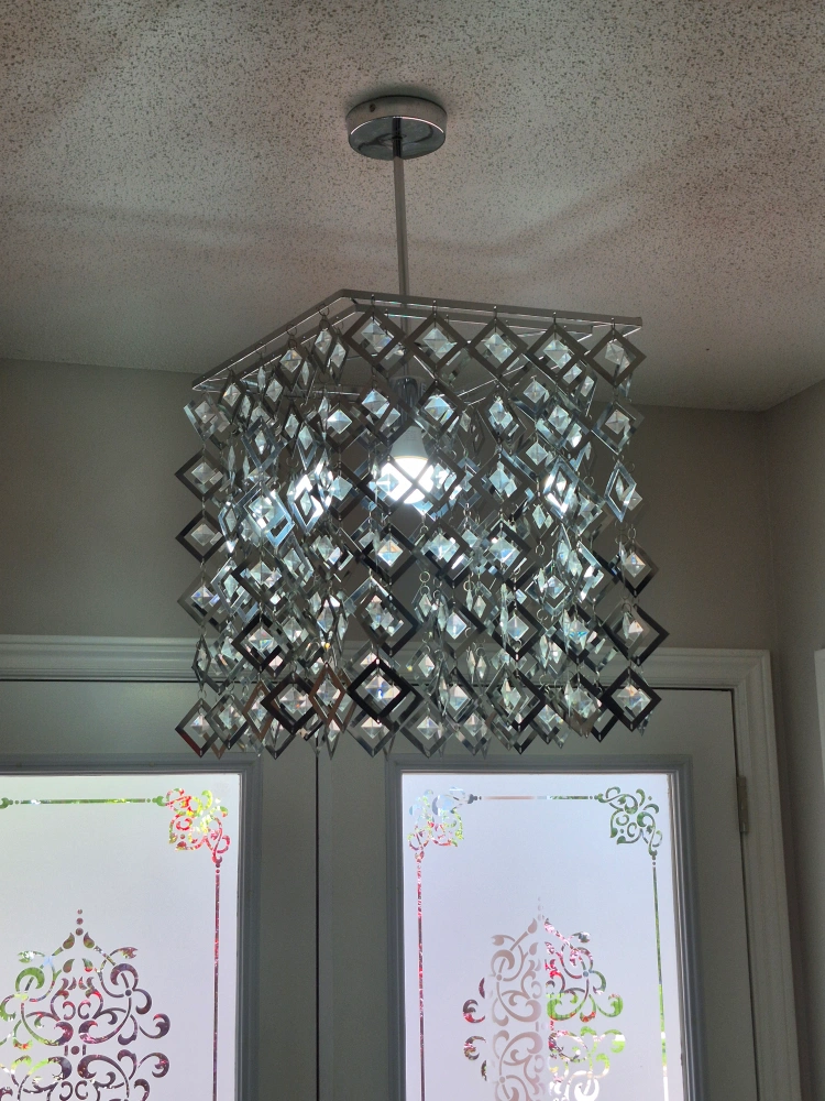 Add a touch of sparkle to your home with this modern crystal chandelier! This eye-catching light fixture features a chrome creating a beautiful and elegant ambiance. Perfect for a dining room, living room, or entryway, this chandelier is sure to impress.