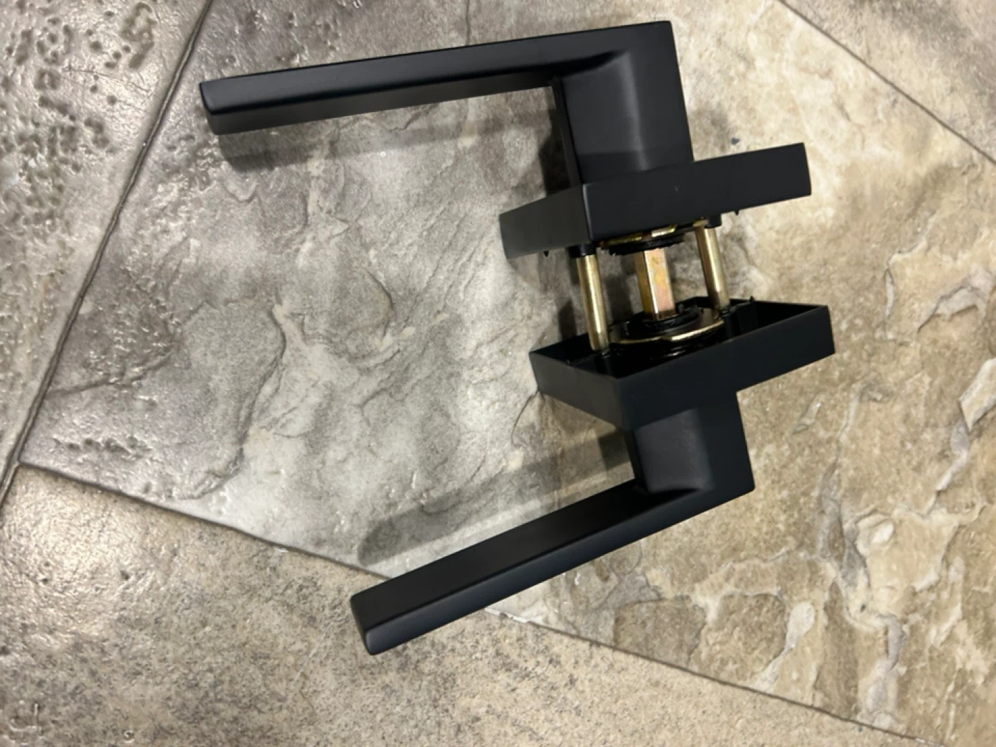 Selling a modern door handle set in matte black. It's in great shape and ready to install to give your door a sleek, updated look! Perfect for any contemporary home. There is no lock on this handle