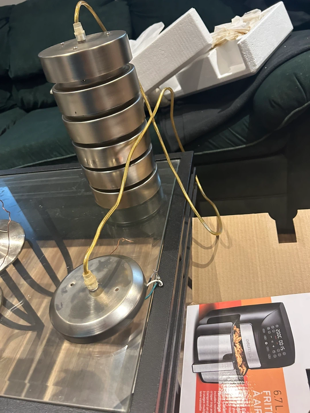 Selling a modern pendant light fixture in silver! It's in great condition and comes with the original box. This stylish light would be a great addition to any room