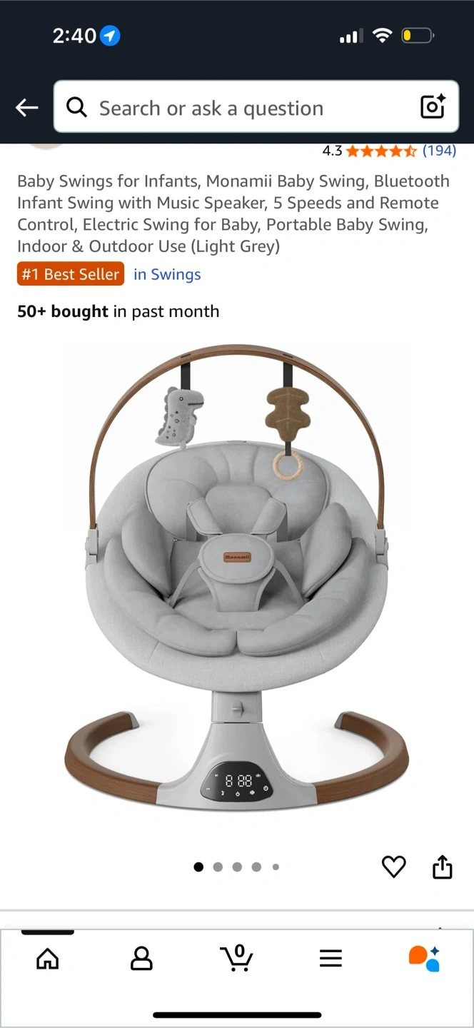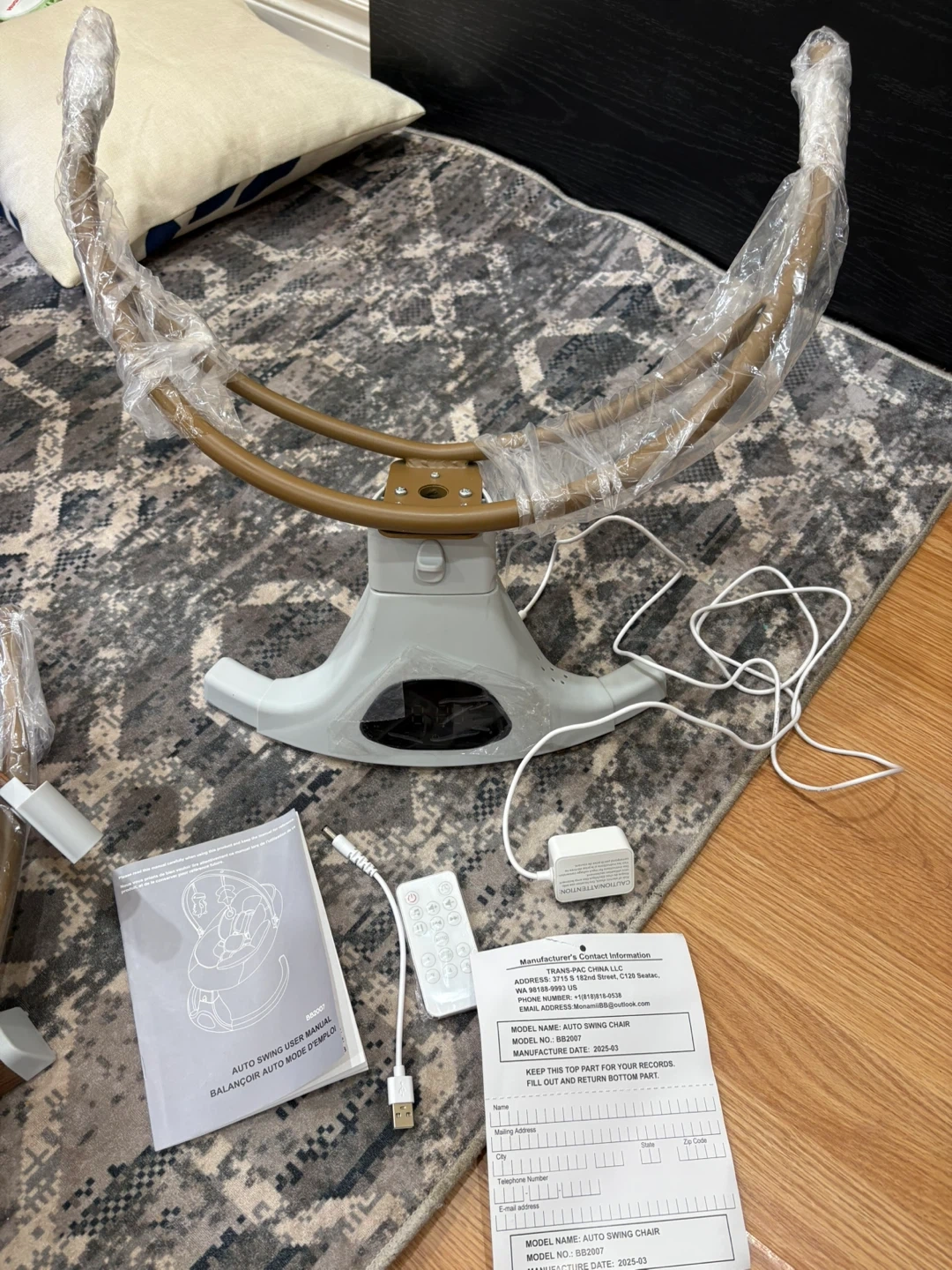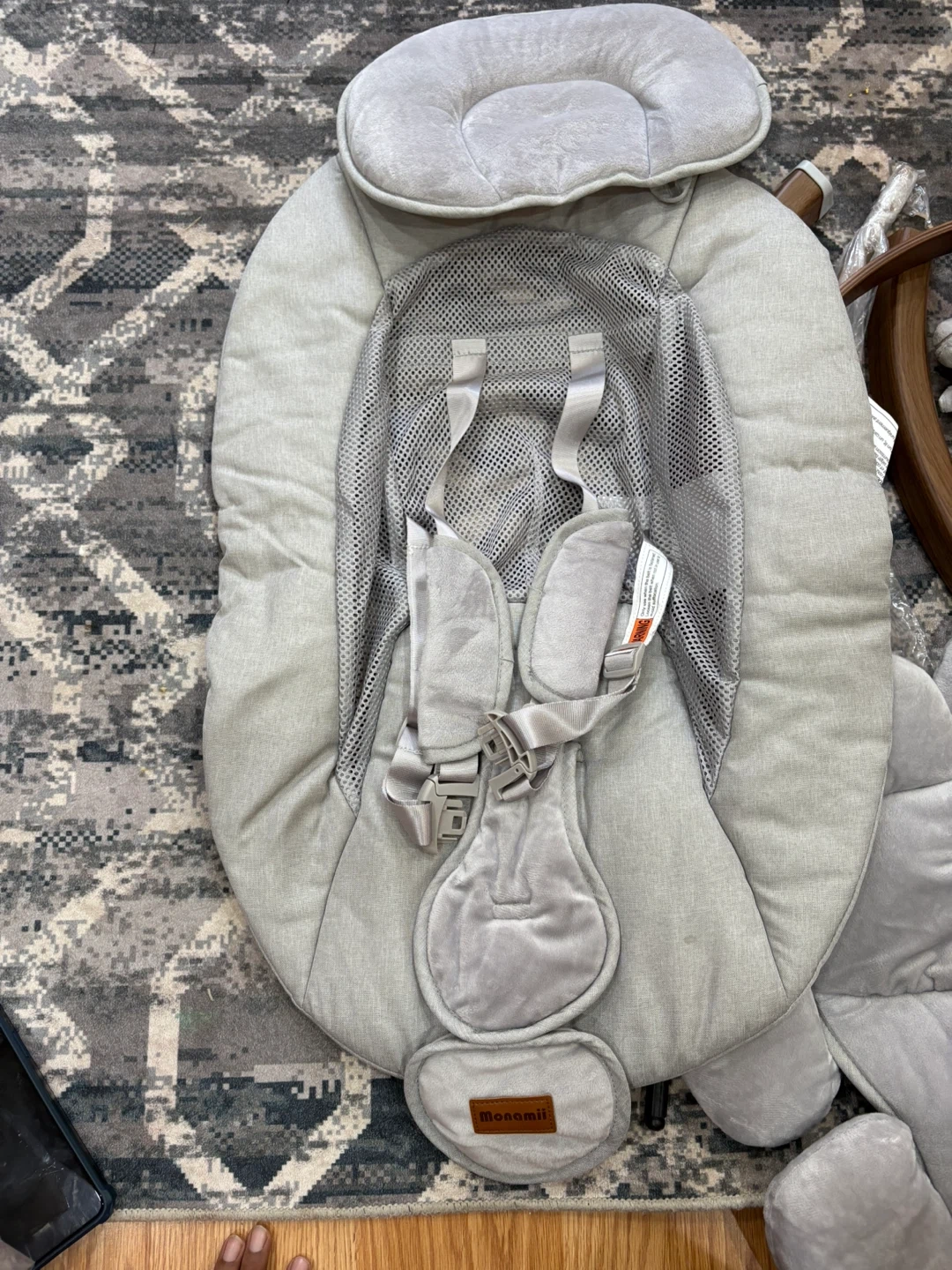 Selling a Monamii baby swing in excellent condition! It comes with all the original parts and accessories, including the remote control and instruction manual. The swing features multiple speeds, a music speaker, and a remote control, making it perfect for indoor or outdoor use. It's a light grey colour and has been well taken care of, so it's ready for a new home! The swing is $230 on Amazon. I don’t need it and this has not been used at all just opened the box to take the pictures. Willing to sell it for $140. Price is negotiable.