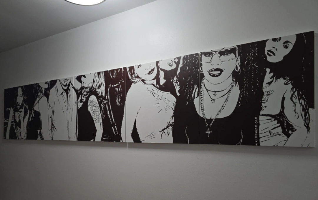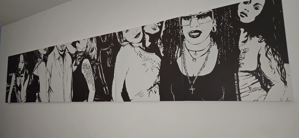 This is a Monizm black and white wall art piece. It's in great condition and ready to add a unique touch to your space. We bought this about 3 years ago but its time for a change. If you're an artistic person you can paint anything you want on these. im not sure what material these are made from but it's rigid. I dont believe it to be particle board perhaps some kind of polymer or plastic coated canvas. I really dont know what these are made out of. Hardware is included.