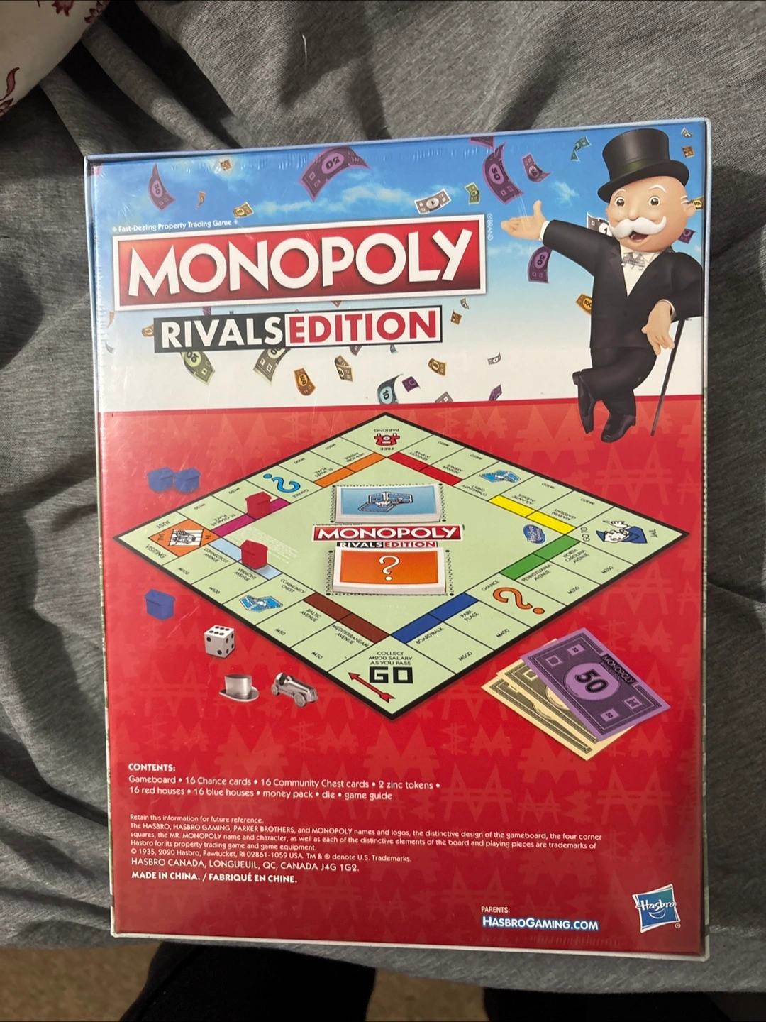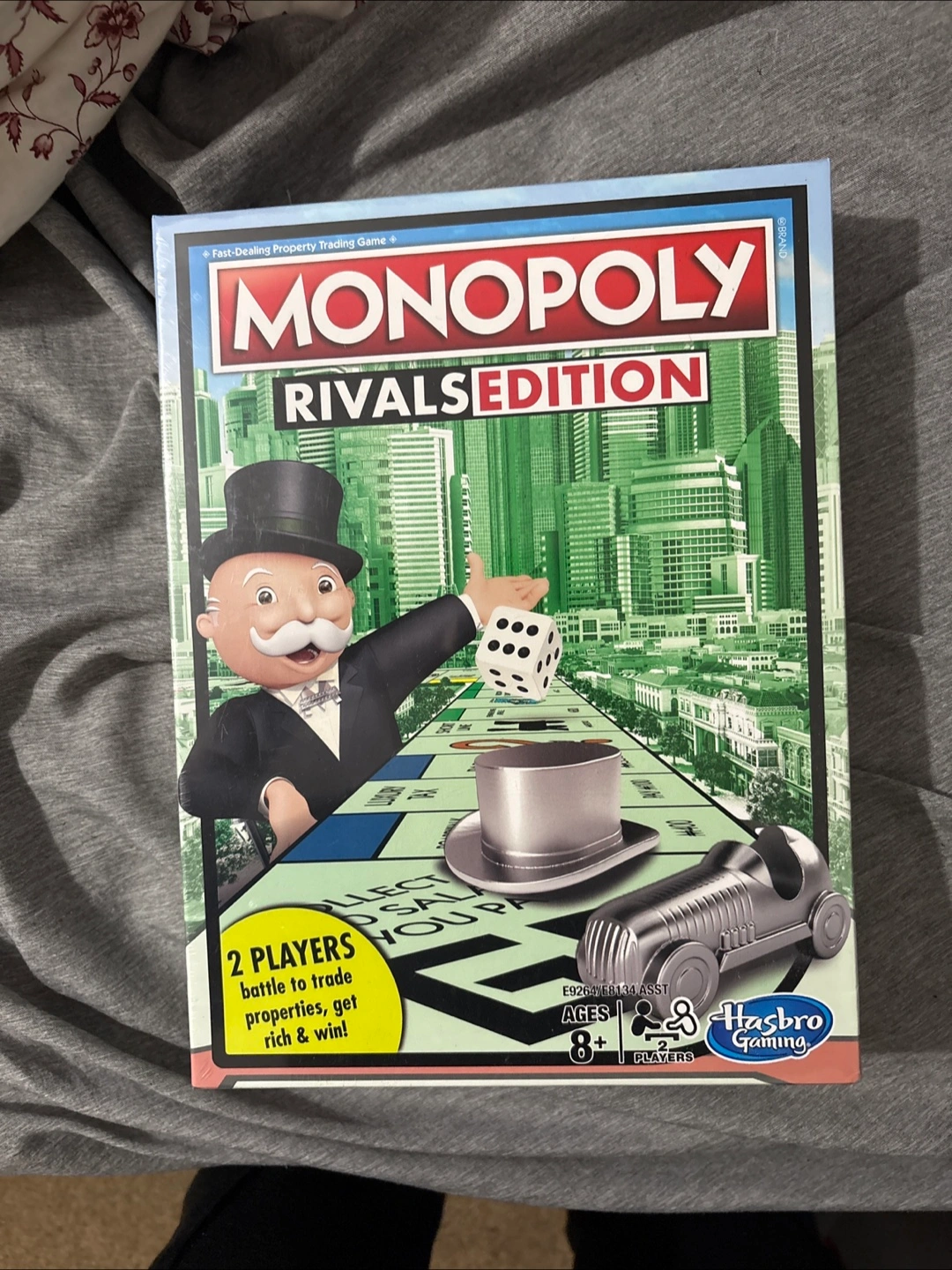 Selling a Monopoly Rivals Edition board game! It's a fast-dealing property trading game. Includes the gameboard, cards, houses, tokens, dice, and money pack