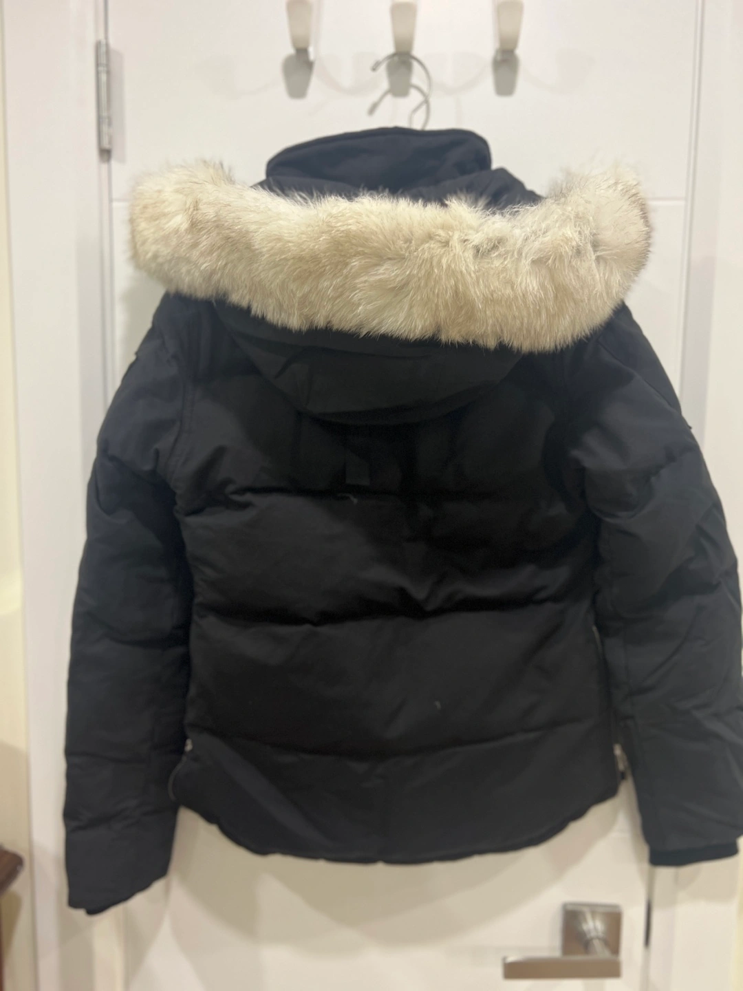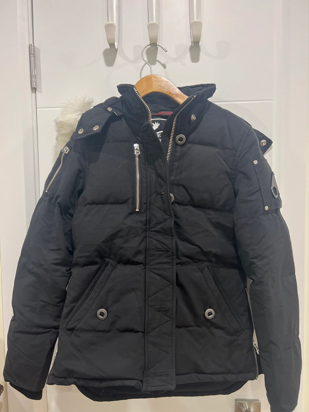 Selling a stylish Moose Knuckles Black Puffer Jacket with Fur Trim