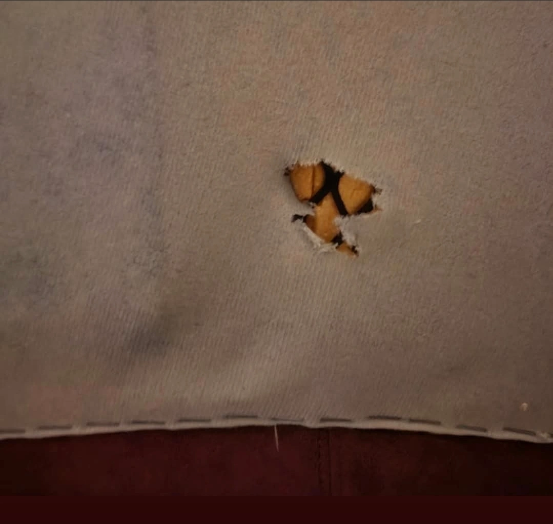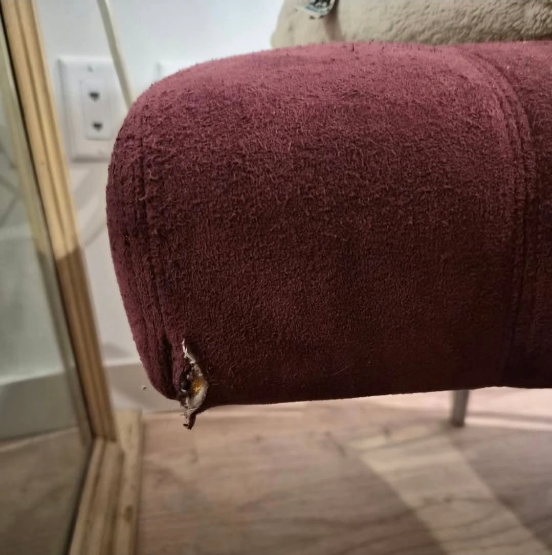 For sale: curved bench by Moroso Italy. $400. Two small tears as shown in pics, one of which is not visible as it's underneath. I love this bench but just don't have space for it. The bench is approximately 75 inches long and made of poliestere and poliuretano.