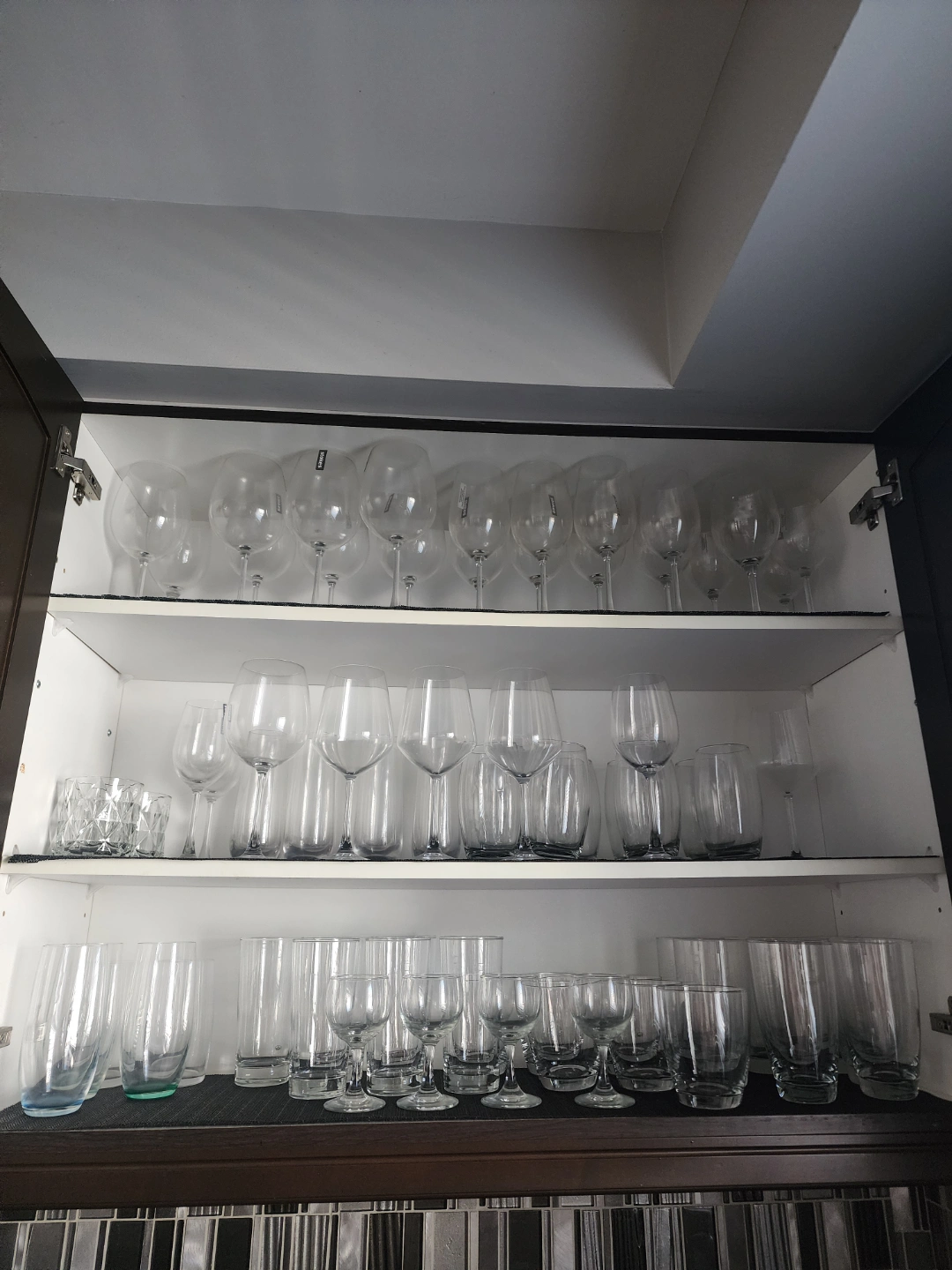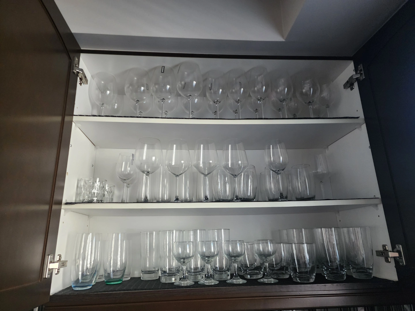 Moving Sale - glassware: wine glasses, tumblers, rocks glasses
