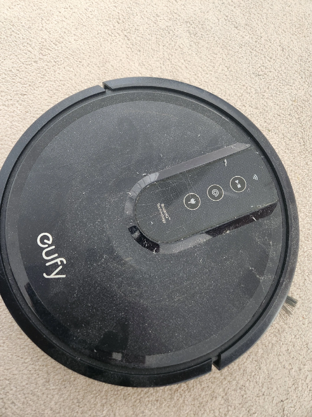 pick this up before its gone.Pre-owned robot vacuum. Scratches visible on top. Includes side brushes. Model number RoboVac 25C.works great battery life of more than an hour in a single run.sometimes stops while returning to docking station.