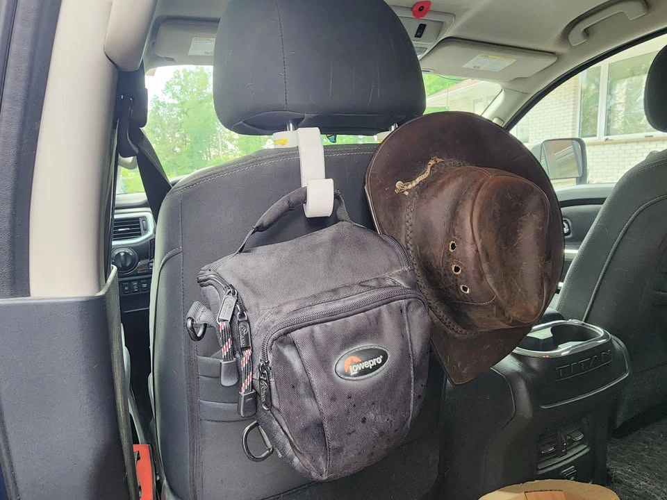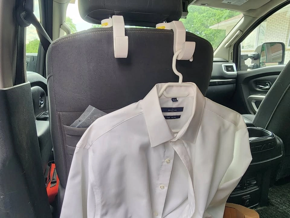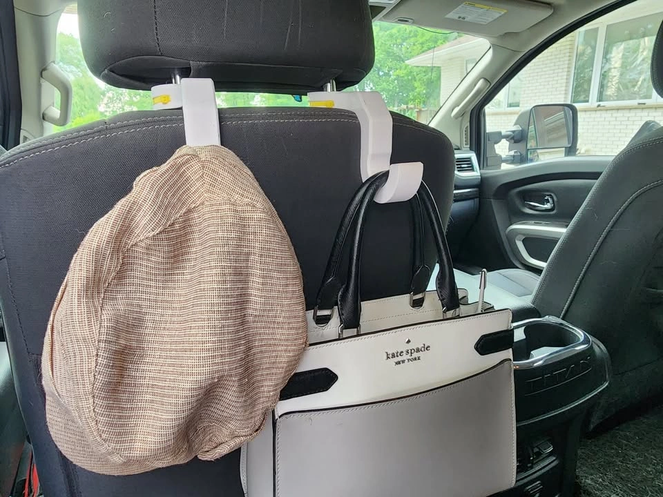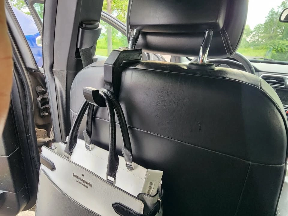 Hang on your Car / Truck headrest hook. -Keep your Purse off the Floor. -Make use of the passenger seat without laying your Purse on the floor/back seat to roll around. 3D Printed in Strong light weight plastic -Hang your Hat that you paid upwards of $45 and not let your dog / people sit on it. Hang you bag of Groceries up - so that items don't roll out of the bag. -Will hold up to 50lbs without a problem. -Available in White/Black or Red -Payment via Cash (preferred) or confirmed email transfer.