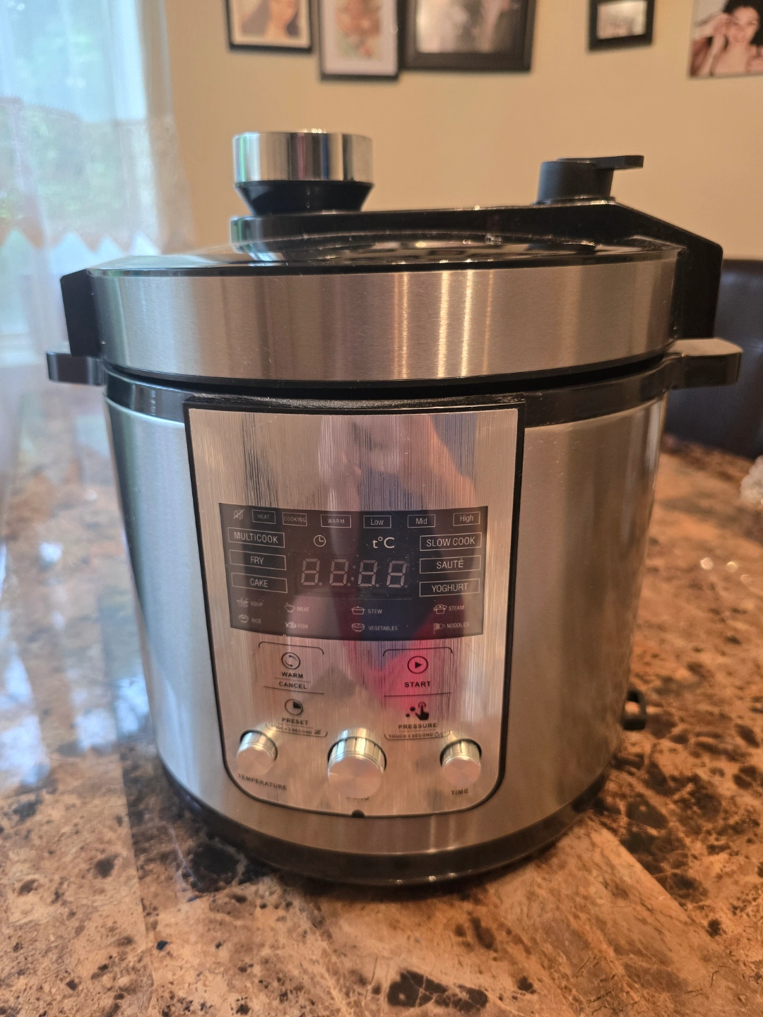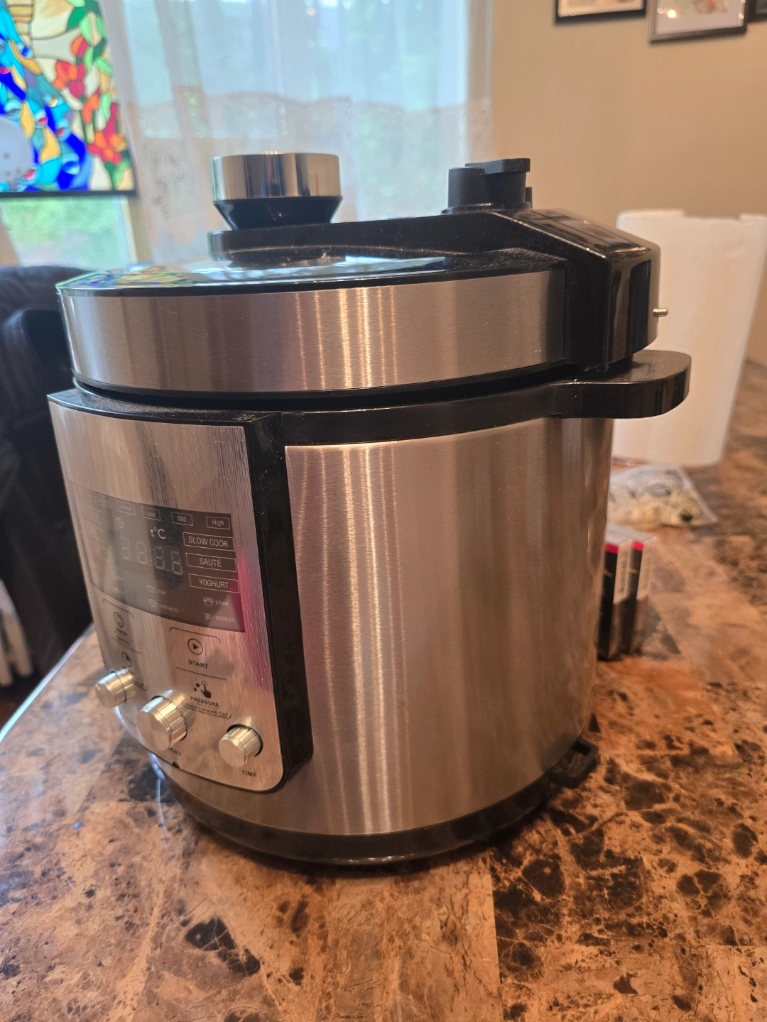 Electric pressure cooker. Features multiple cooking modes, like slow cook and saute. Includes accessories. Makes for a great way to make a meal after a long day. Brand new never used 11 in 1 will all the accessories that came with it.