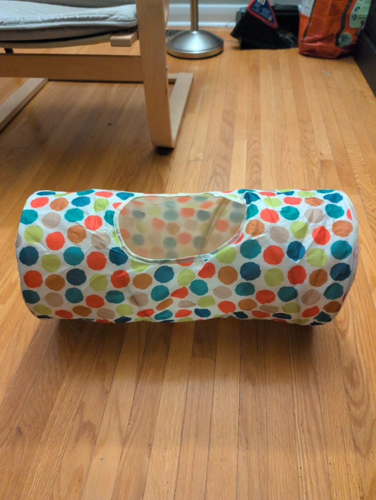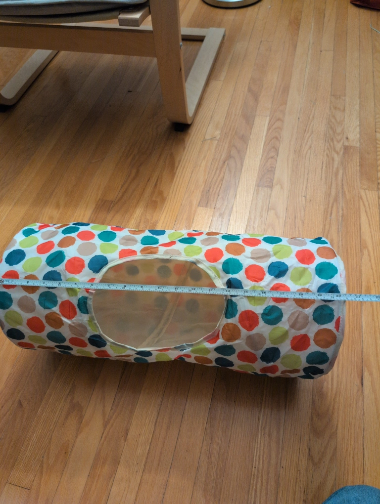 9 x 9 x 20 inches Polka dot design. Practically unused, good for small pets such as guinea pigs or rabbits. Can fold up to be stored compactly.