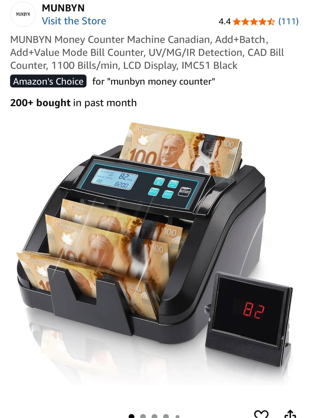 Show allMUNBYN Money Counter Machine Canadian Brand New