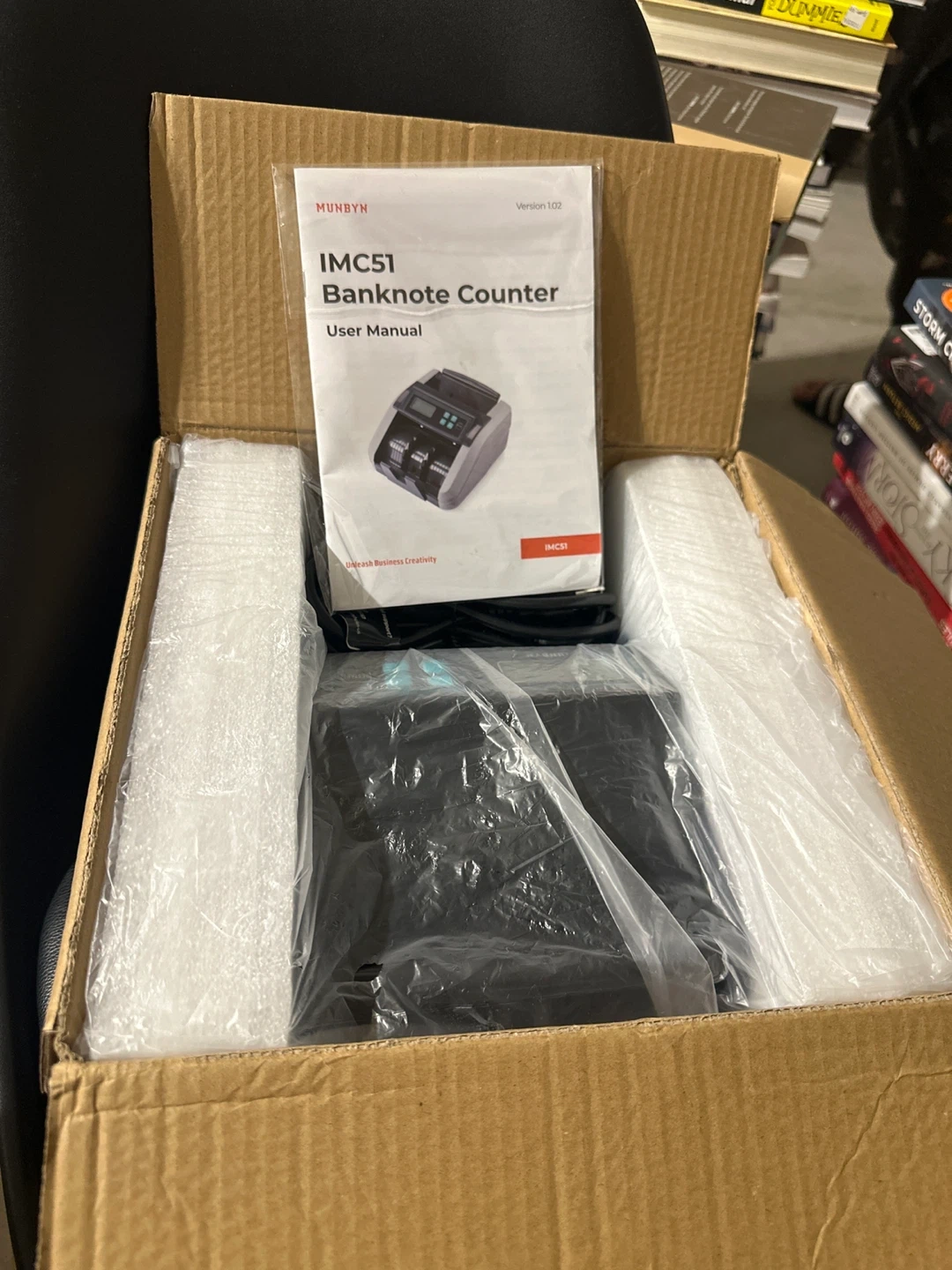 Selling a MUNBYN IMC51 Banknote Counter in like-new condition! It's a Canadian model that can add and batch, with UV/MG/IR detection. It can count 1100 bills per minute and has an LCD display. Comes with the user manual and original box. Great for any business!