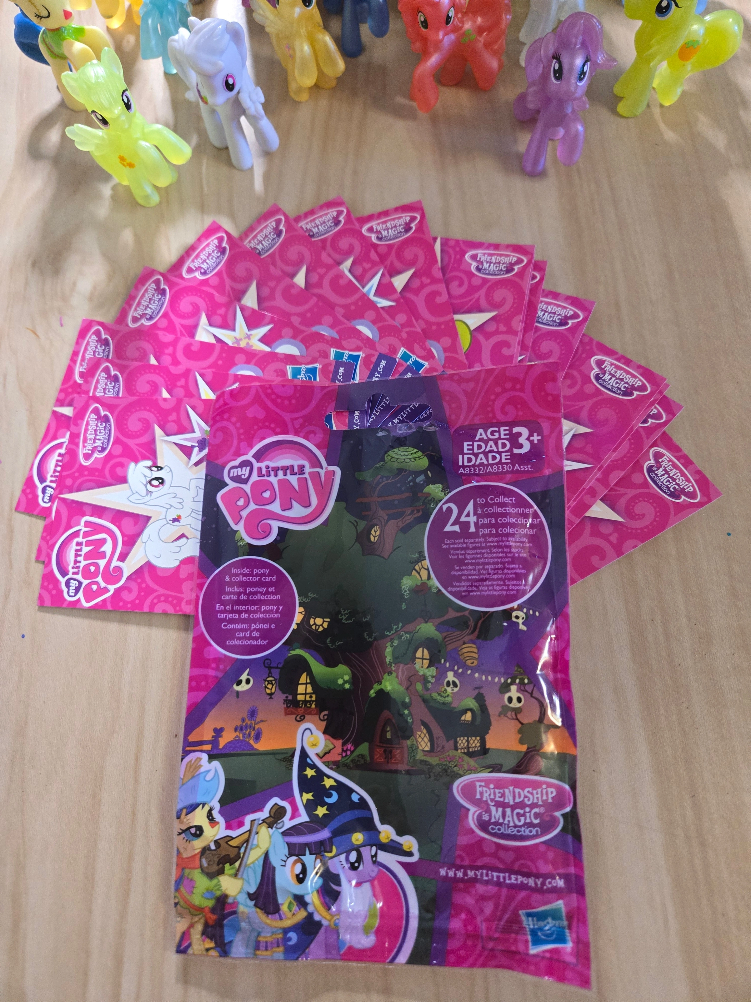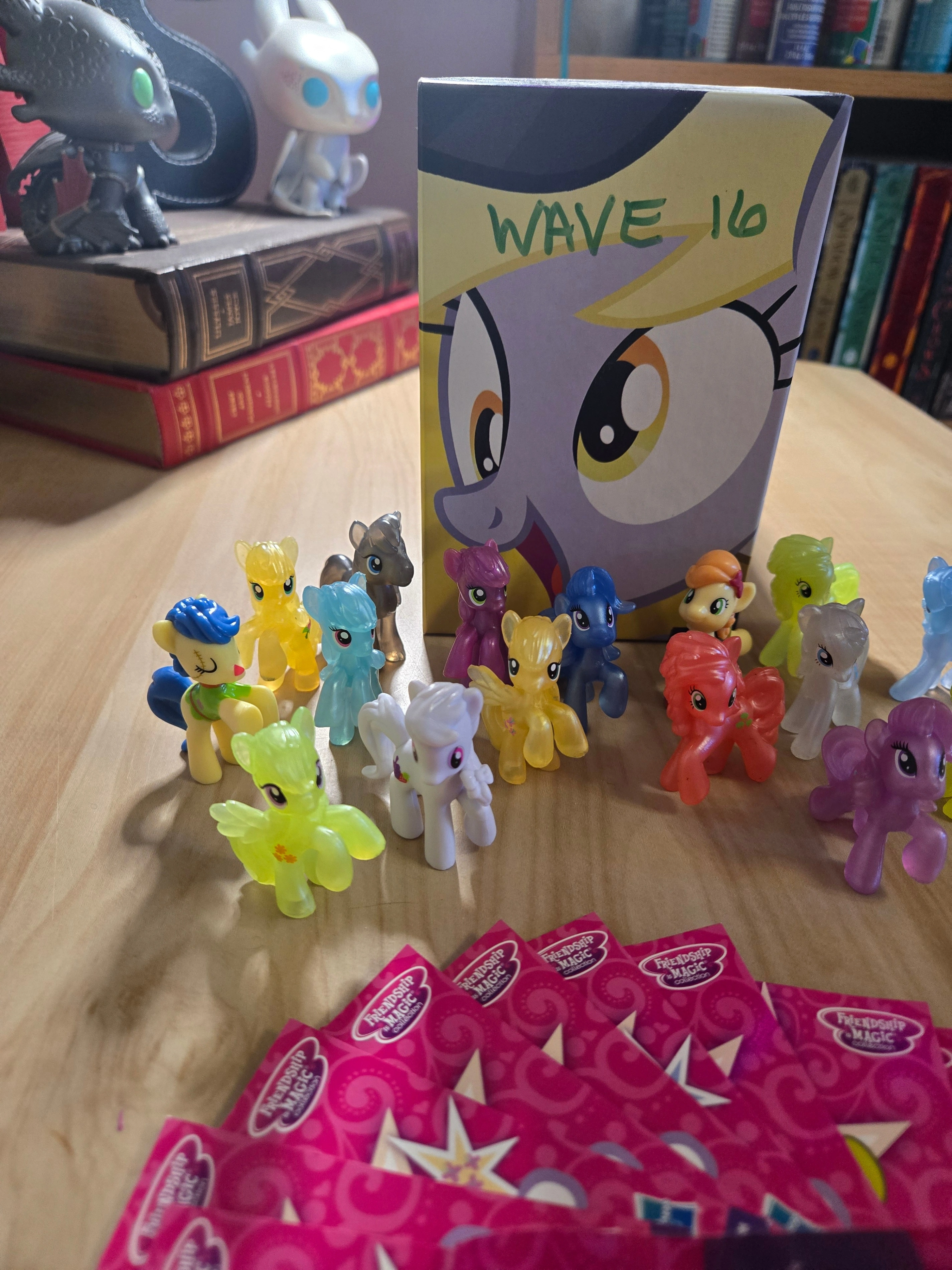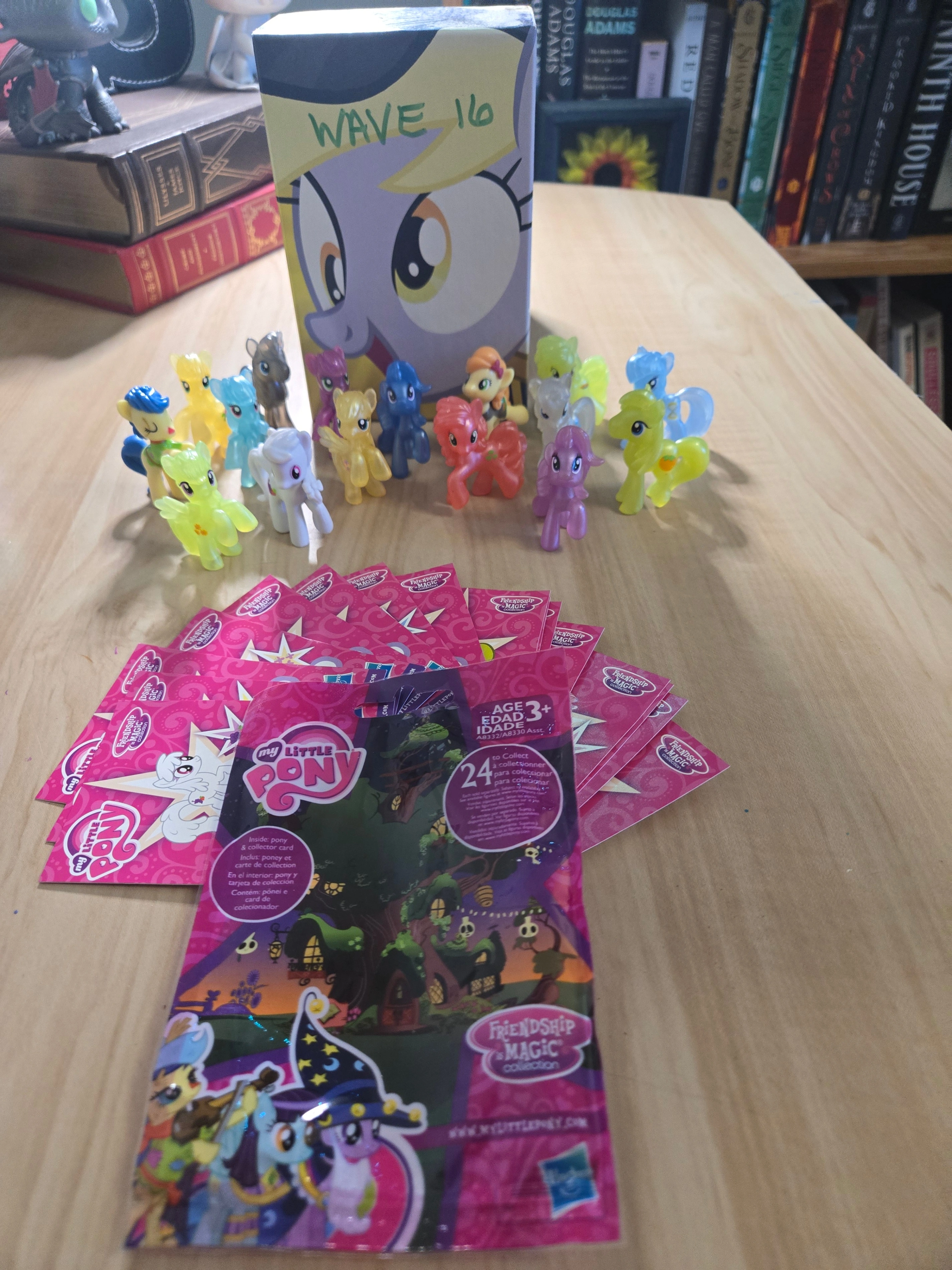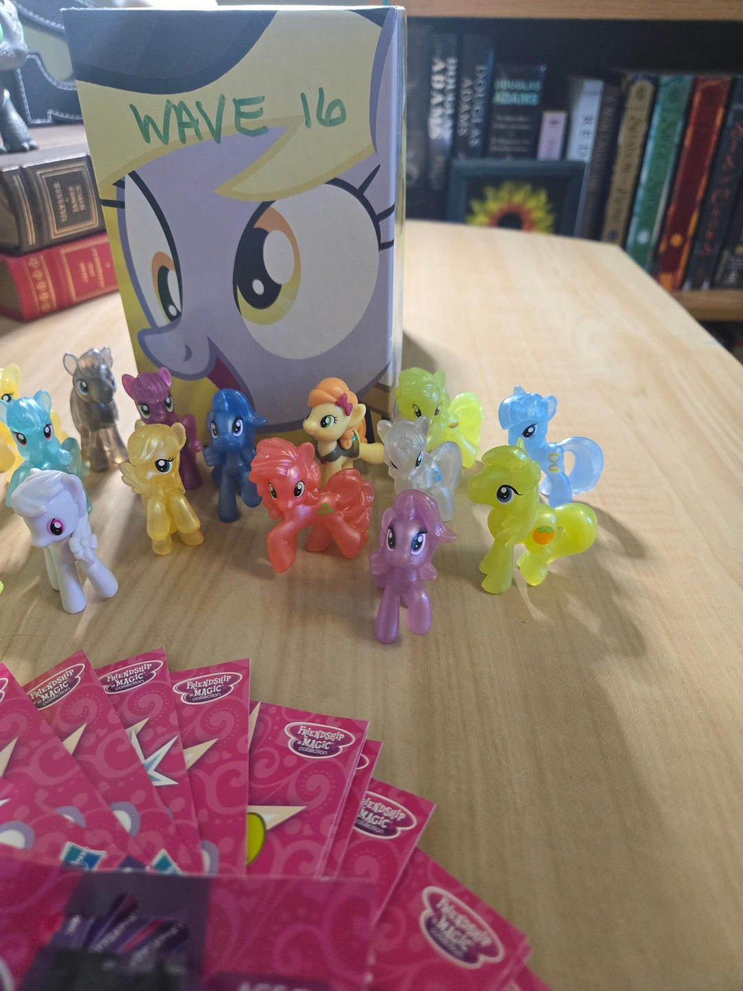 My Little Pony: Wave 16 Ponies with Cards (incomplete) Wave 16 MLP ponies with their collector cards (16 total). Each pony, depending on their position, are about 1-2 inches tall, so please consider this if you are planning on giving these to children. *** Please note that this wave is incomplete. Missing are ponies 4, 5, 14, 15, 19, 20, 21, and 23) *** The cards correspond with the ponies are included, though due to the nature of blind bag packaging, the cards are in decent but not perfect condition. With this wave, I've included the MLP box with the wave written on it that I used to store them. Check out my profile for more MLP waves available for sale. I will not separate a single pony out of a wave due to the nature of the collection. I have no problem negotiating price if you want to buy more than one wave. Let me know if you would like more information or photos and I will get back to you as soon as I can.