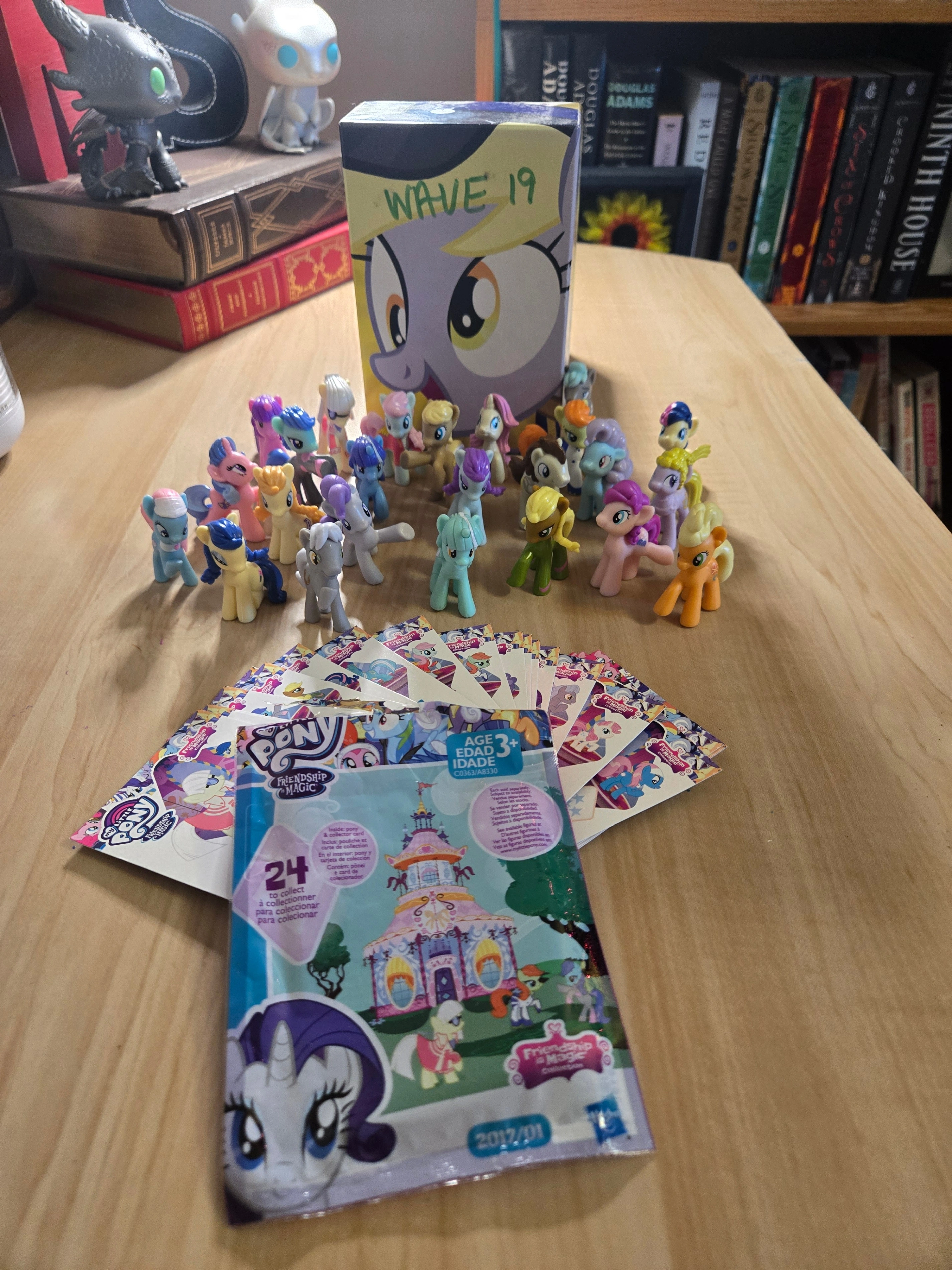 My Little Pony: Wave 19 Ponies with Cards (complete) The complete wave 19 MLP ponies with their collector cards (24 total). Each pony, depending on their position, are about 1-2 inches tall, so please consider this if you are planning on giving these to children. The cards correspond with the ponies are included, though due to the nature of blind bag packaging, the cards are in decent but not perfect condition. With this wave, I've included the MLP box with the wave written on it that I used to store them. Check out my profile for more MLP waves available for sale. I will not separate a single pony out of a wave due to the nature of the collection. I have no problem negotiating price if you want to buy more than one wave. Let me know if you would like more information or photos and I will get back to you as soon as I can.