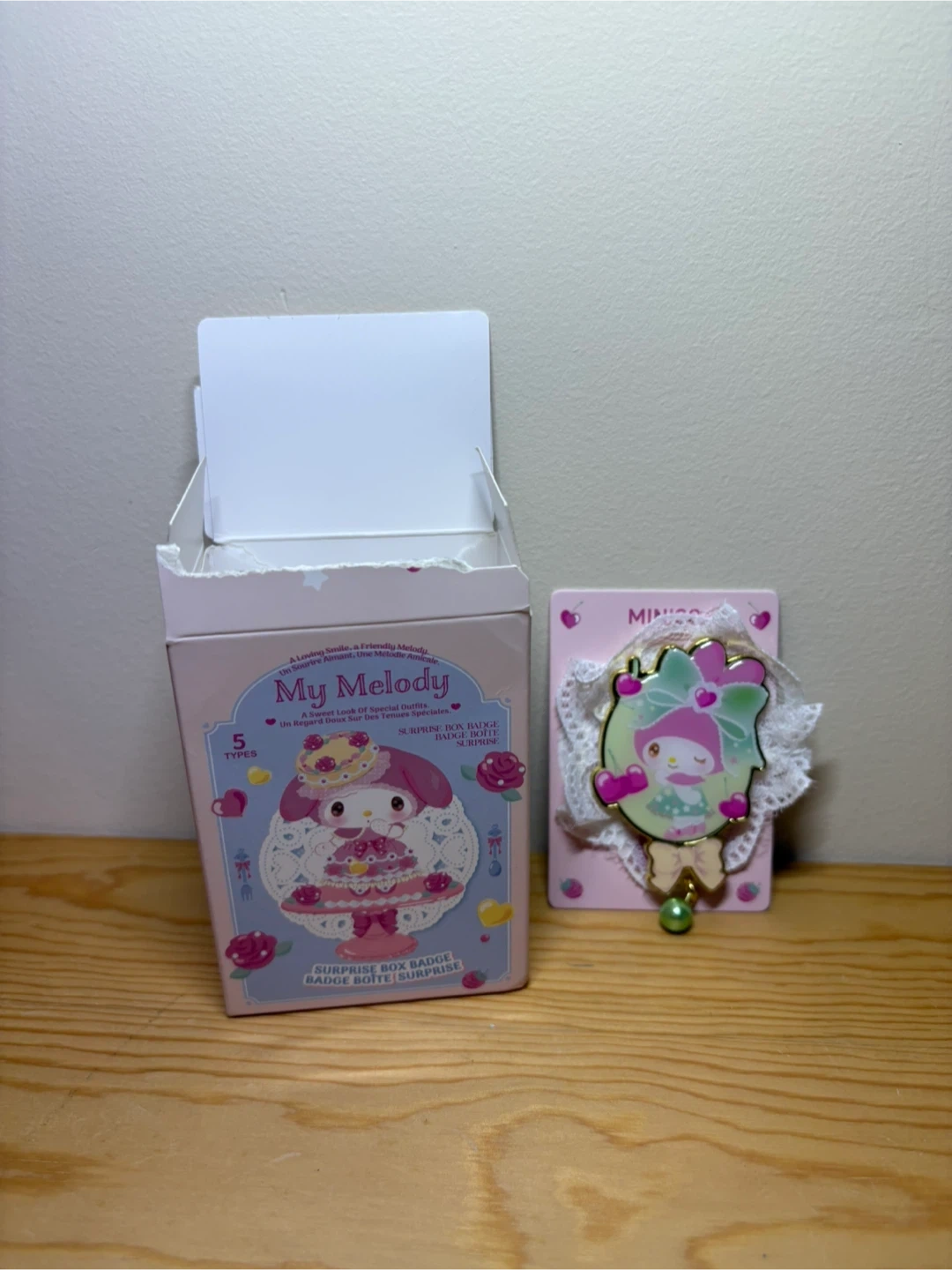Selling a super cute My Melody Surprise Box Badge from Miniso! It's still in its original packaging. A sweet addition to any outfit! Good for decorating your fridge, white board and anywhere you like to decorate!