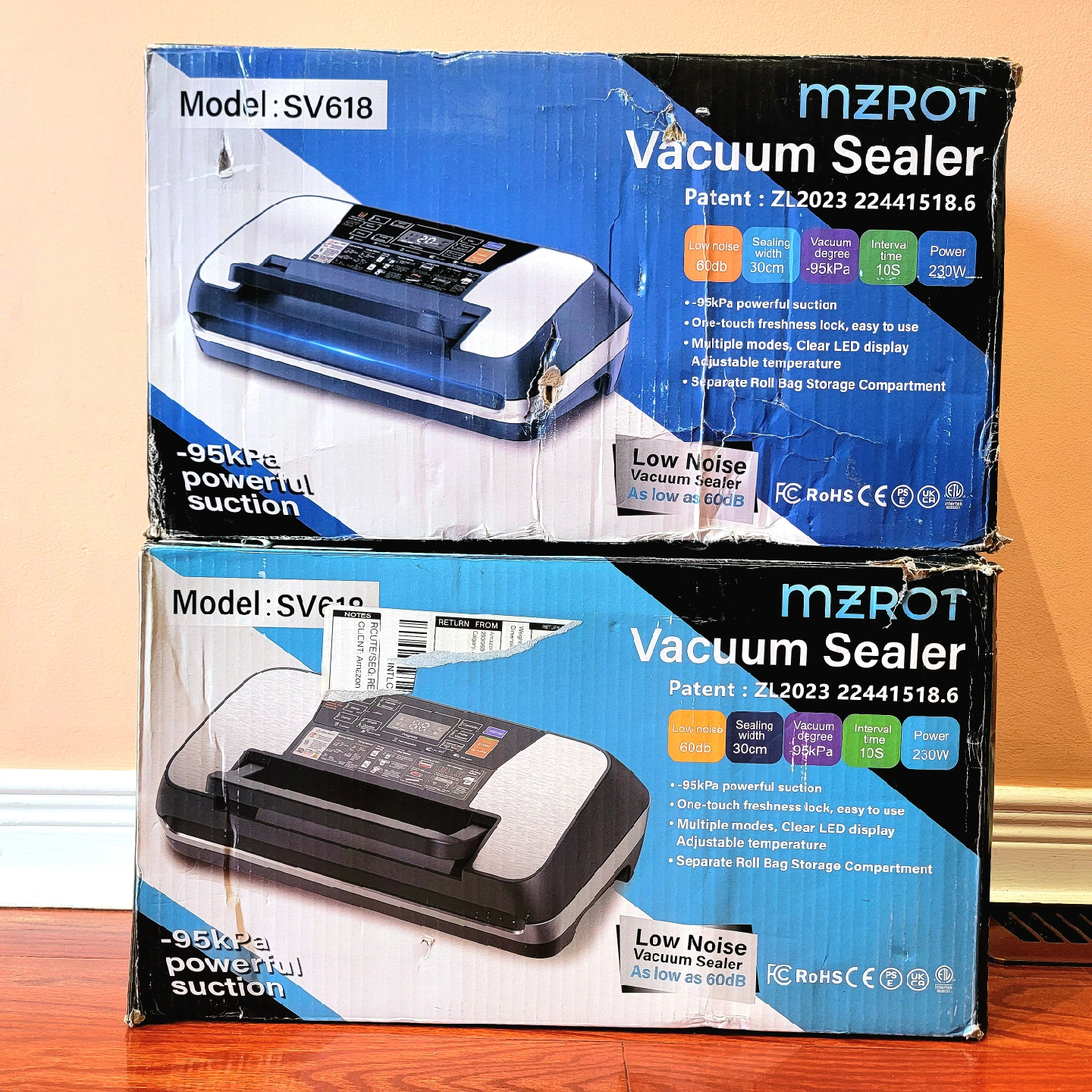Keep food fresher, and longer! Upgrade your kitchen with the Mzrot 95kpa Vacuum Sealer Machine, designed for powerful, reliable sealing that helps lock in freshness and prevent waste. With its strong suction power, this sealer is perfect for storing meats, veggies, snacks, and bulk items, while also keeping out moisture and freezer burn. The vacuum sealers are both BRAND NEW AND NEVER USED. Both have all their original parts and accessories. I'm currently selling 2 of these sealers ($100 EACH, 1 Blue, 1 Black). Open to offers. They sell for $300-$500 on Amazon. MORE ABOUT THE VACUUM SEALERS: Model: SV618 (2025 Model) Stainless steel, 230 Watts, plug in power, high quality heating wire, vacuum seal in 8-18 seconds, vacuum seal 30 bags continuously within 15 minutes, double heat sealing, keeps food fresh for up to 8 times longer, one touch auto button, can cancel the operation midway, has a built-in detachable sink, unit size 16x8.1x4.7 inches for compact storage, auto shut off, 110 Voltage, 3 kg weight, human interface. Modes: Dry & Moist Mode, Damp & Pulse Mode, Seal & Can Mode, Single/Double seal Mode, Gentle/Normal Pressure Mode, and Manual/High Temperature Seal Mode. WHAT'S INCLUDED: Built-in Bag Roll Storage, Power Cable, & Cutter (Per Box), 1 vacuum sealer (Per Box), 1 vacuum bag rolls (11" x16") (Per Box), 5 small pre-cut bags (5.9" x7.8") (Per Box), 5 large pre-cut bags (7.8" x11.8") (Per Box), 2 user manual (Per Box), 1 air suction hose (Per Box).