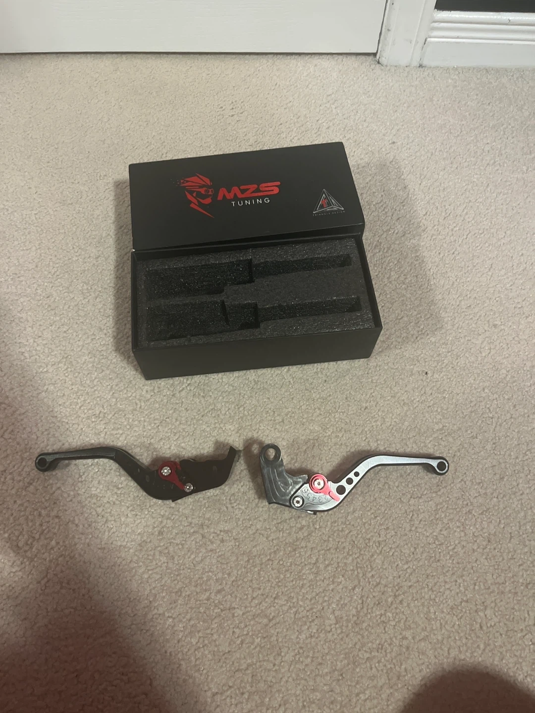 Brand new MZS Tuning motorcycle brake and clutch levers. They come in the original box. Check out the pictures for details!