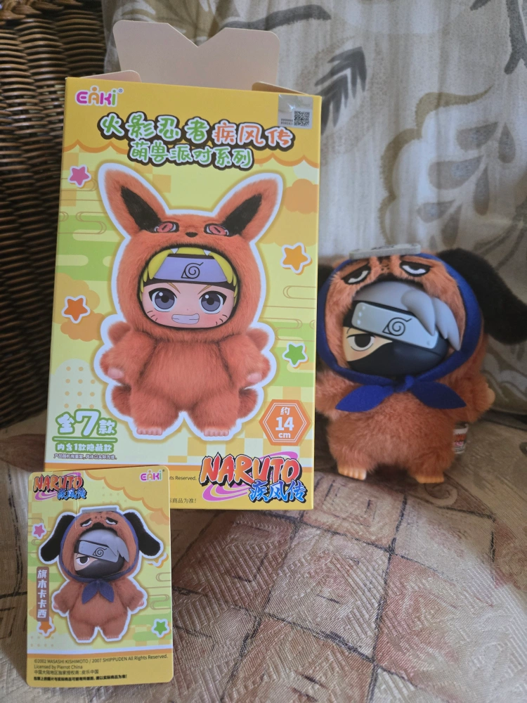Selling a cute Kakashi blind box figure from the Naruto Shippuden EAKI series! The box is opened but figure is sealed in original bag. It's about 14 cm tall. A fun collectible for any Naruto fan!
