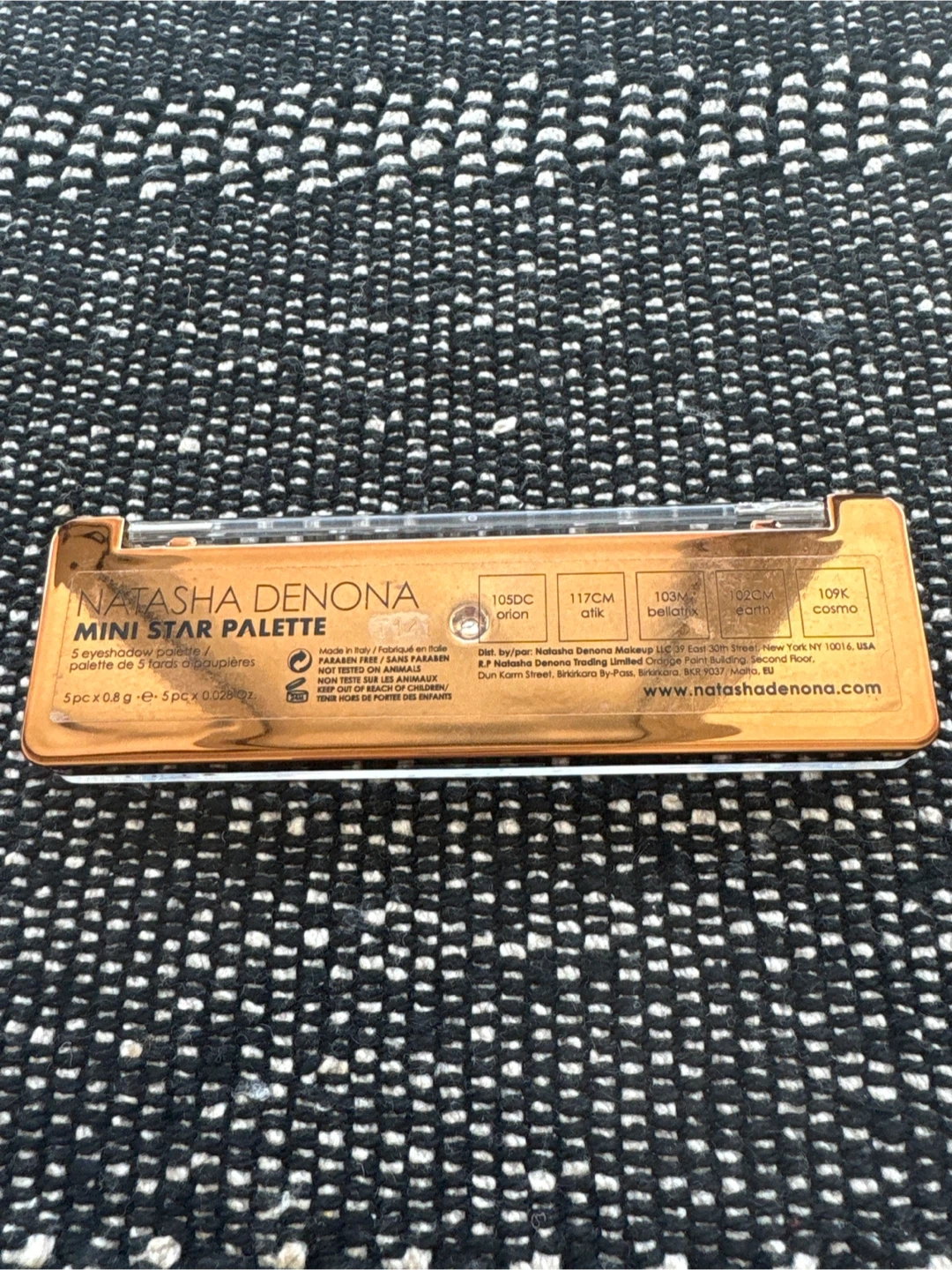 Selling a Natasha Denona Mini Star Palette with 5 eyeshadows. It's in great condition and ready for a new home! The palette includes a mix of matte and shimmer shades perfect for creating a variety of looks. Made in Italy.
