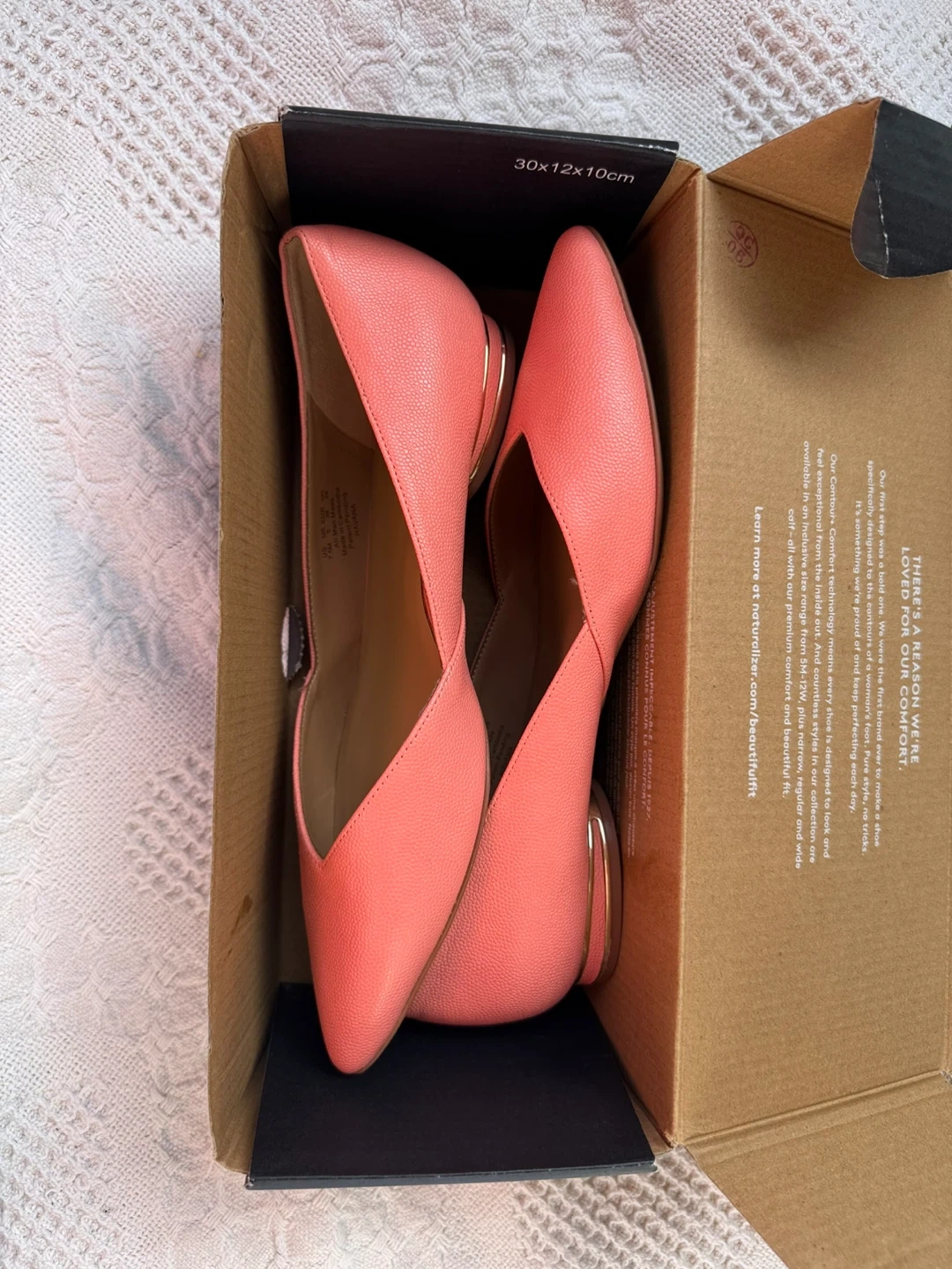 Naturalizer Havana flats in a lovely orange colour, size 7.5M. These stylish flats are in great condition and come with the original box. Originally bought for $155.