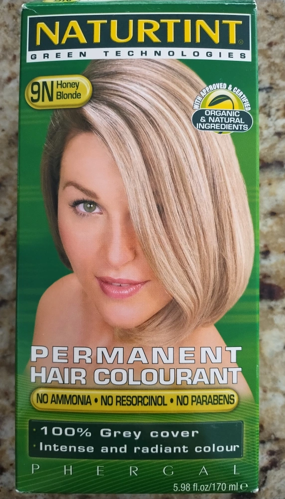 Selling a box of Naturtint permanent hair colour in 9N Honey Blonde. This hair colour is formulated without ammonia, resorcinol, or parabens, and it offers 100% grey coverage. The box contains protective gloves, an instruction leaflet, Naturtint Colourant, Colour Developer, Nutrideep, and Naturtint Shampoo open box. brand new.