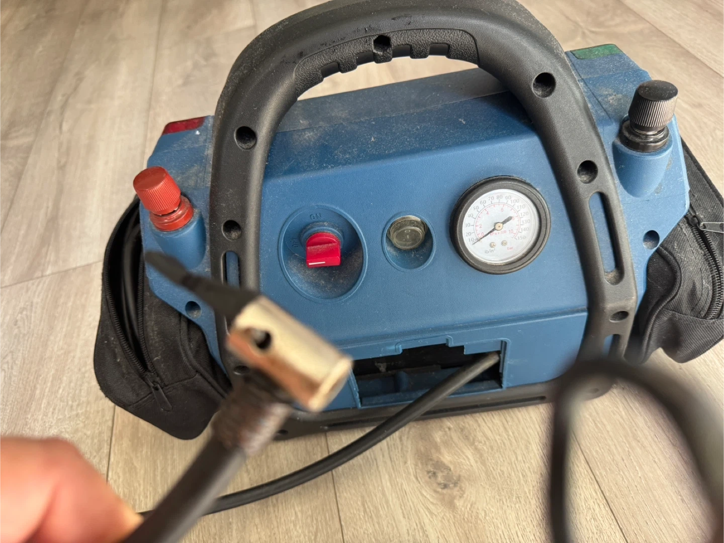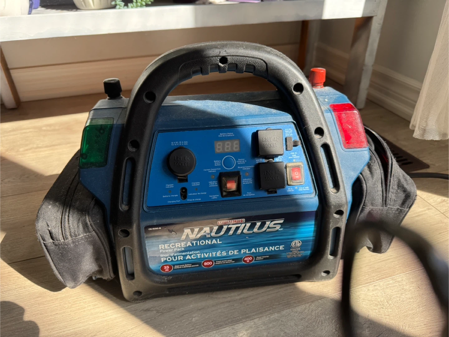 Selling a Nautilus Recreational Power Pack. It's a handy portable power source for various activities. It includes a 12V DC socket and a 120V AC socket for powering different devices. The pack also features an integrated air compressor with a gauge, perfect for inflating tires or other inflatables. Comes with a carrying case and accessories