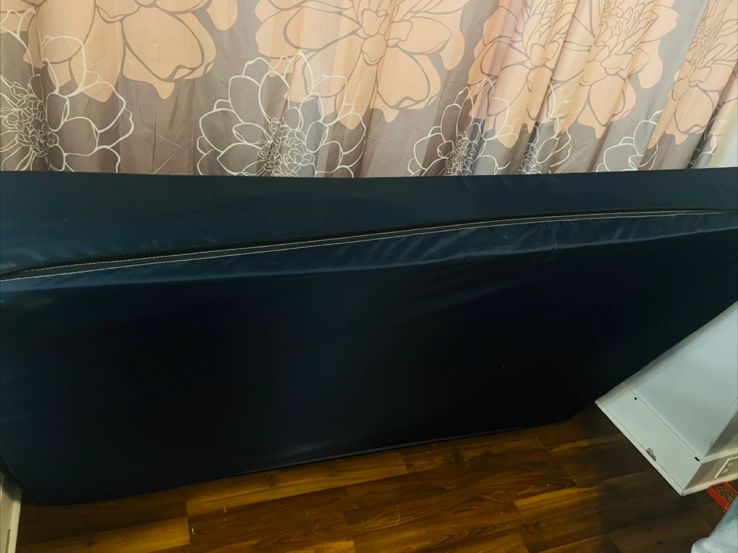 Selling a mattress in fine condition. It's a simple navy blue double size mattress, perfect for a spare room or as a starter mattress. It has some signs of use, but it's still comfy and ready to go!