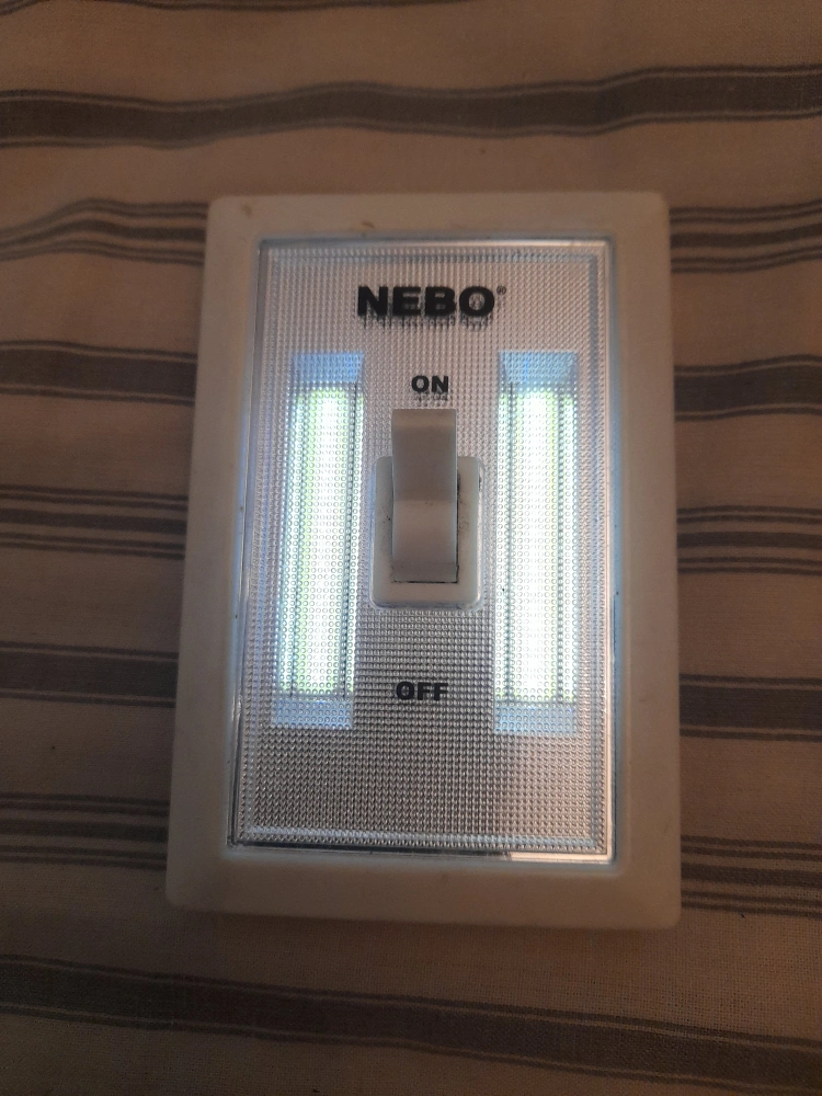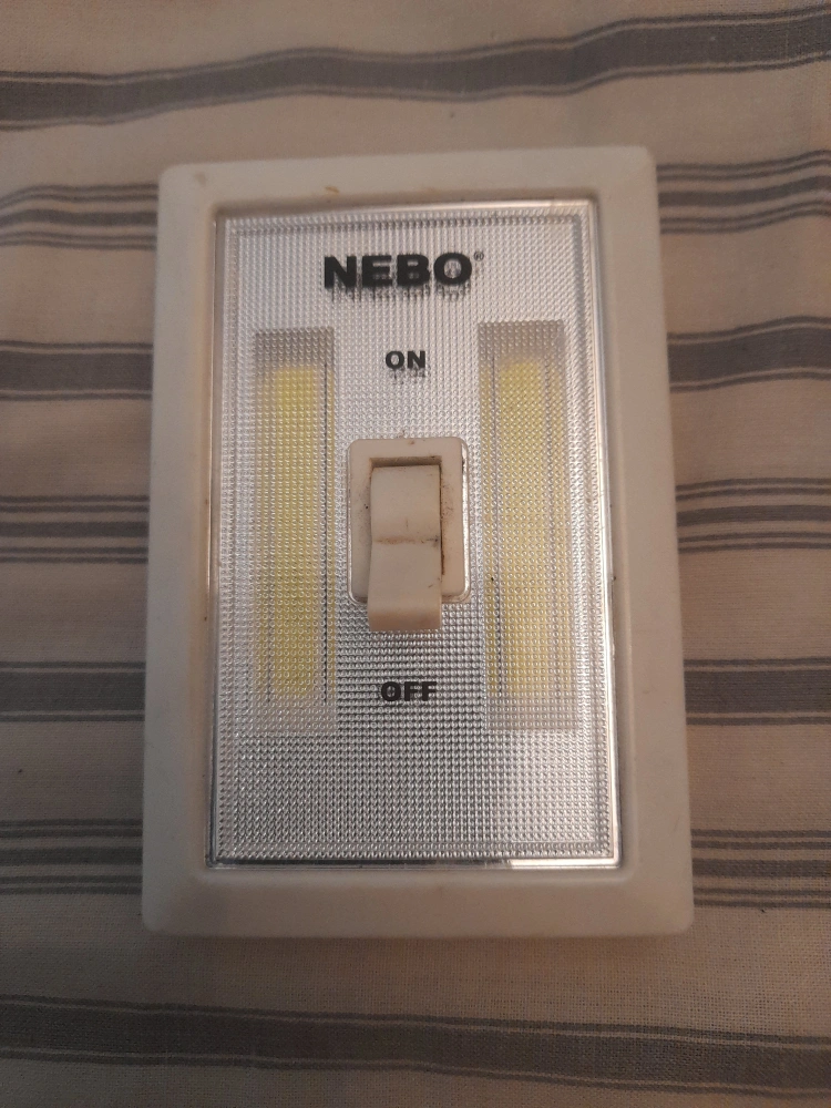 FREE NEBO switch light. It is about 4 inches in length. It uses AAA batteries. good condition. comes with batteries. schedule a date and time with me prior to coming. location is shown in listing.