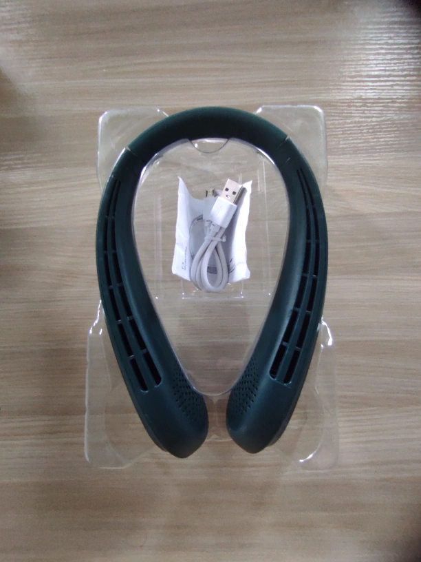 Stay cool on the go with this portable neck fan! It's lightweight and perfect for those hot days. Comes with a charger