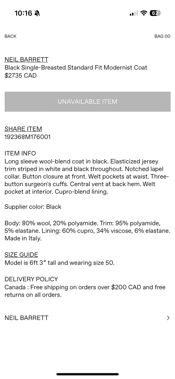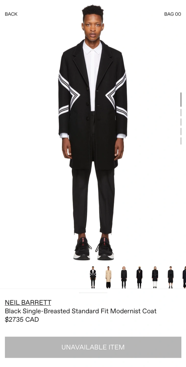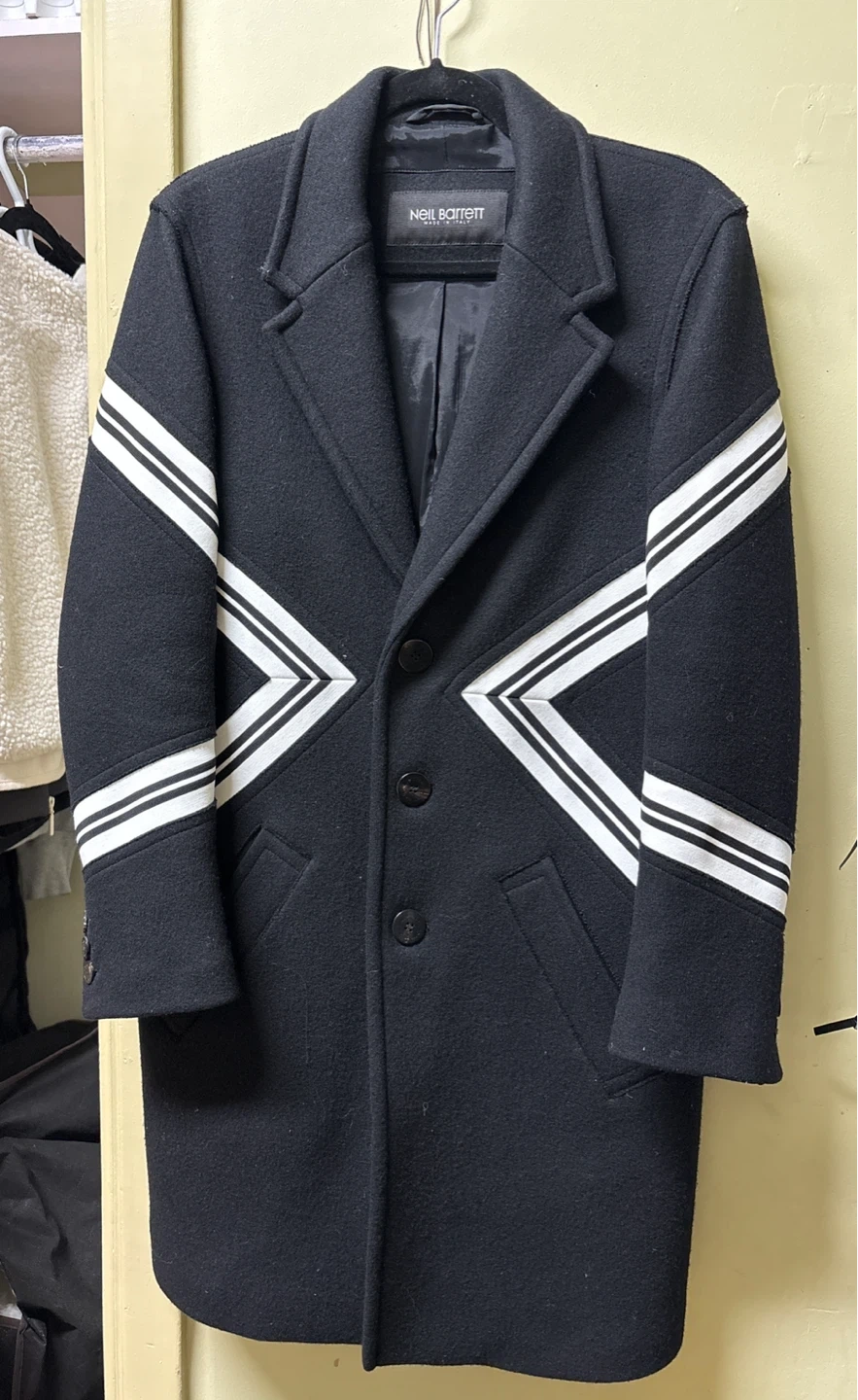 Worn: 1 time Bought: Ssense Original Price: $2735 CAD Size: in photo, check model size Brand: Neil Barrett Neil Barrett black single-breasted modernist coat in standard fit.